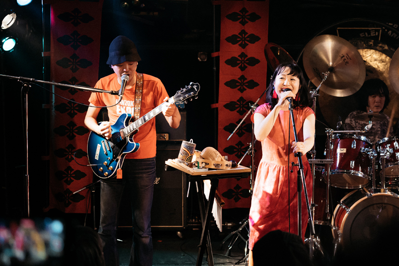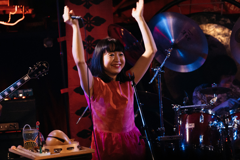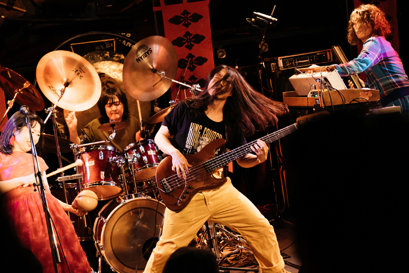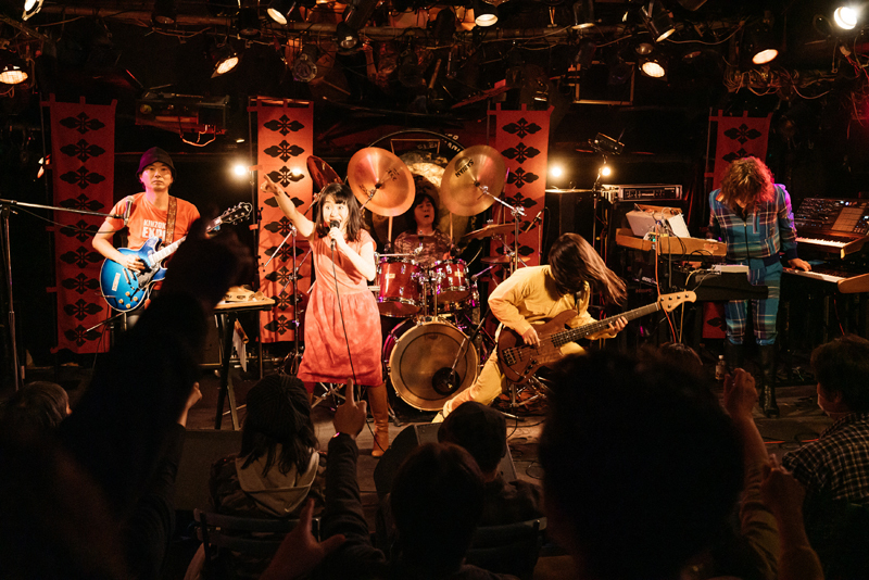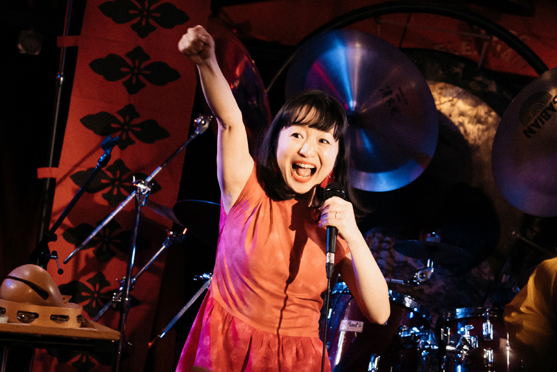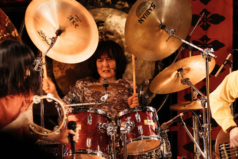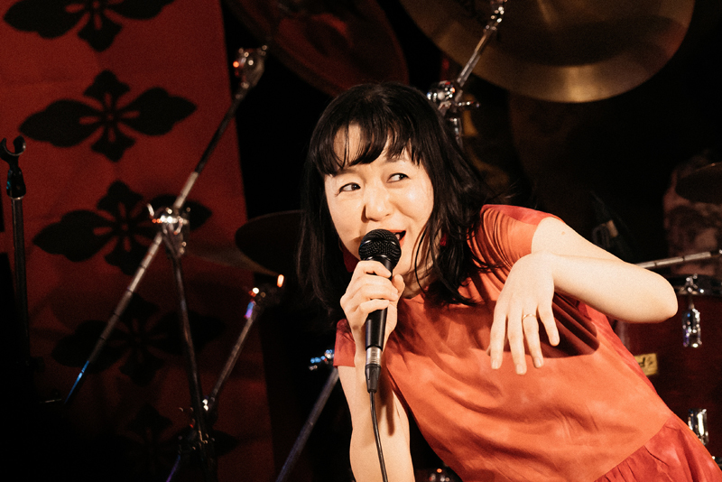 そうこうするうちに、ライヴは早くも終盤を迎える。アルバム『虚無回廊』から〈う・ら・め・し・や〉(作詞:稲益宏美、作曲:後藤マスヒロ/稲益宏美)。幽霊の恐怖を歌った内容だが、グルーヴ味のあるサウンドに乗せて軽やかな言語遊戯が繰り出されて、楽しく聴ける。