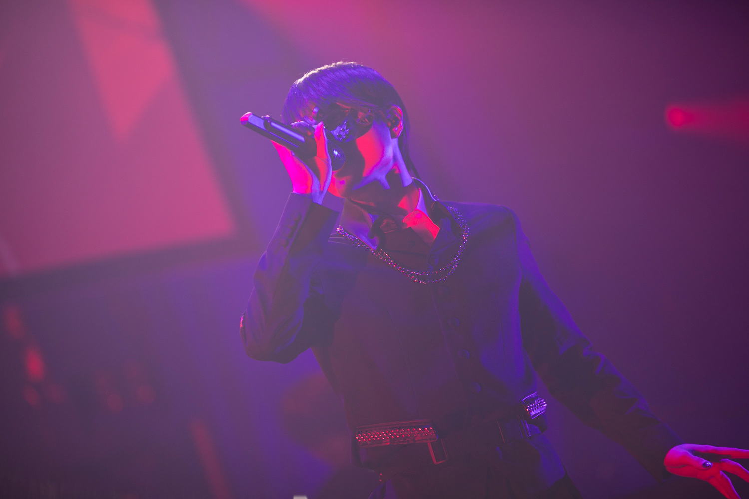煙の中から学ラン風の衣装を身に纏った超学生が登場すると、観客からは熱い歓声が上がる。彼のカラーであるオレンジ色に灯されたペンライトが振り乱れる中、独創的かつヘビーな楽曲「Fake Parade」、超ハイテンポかつ息ができないほどの歌詞が詰め込まれた早口の楽曲「ガトリングアジテイタア」などを歌い上げていく。「マカロン」をはじめ、オリジナル曲ではない“歌ってみた”の楽曲も披露するなど、以前から超学生のYouTubeチャンネルでこれらの楽曲を視聴してきたファンにとって興奮するセクションも。照明の演出も相まって、壮大さの中にどこか恐怖を煽るような空気感そのままに表現した「インゲル」でメルヘンホラーな世界を観せたかと思えば、爽やかでダンサブルな楽曲「Let’s go」では“コンプレックスさえも側から見れば輝く個性”と前向きな歌詞を高らかに歌い上げていく。楽曲毎の表現の変化はもちろん、超学生が歌唱する楽曲の幅広さにも改めて感心してしまう。