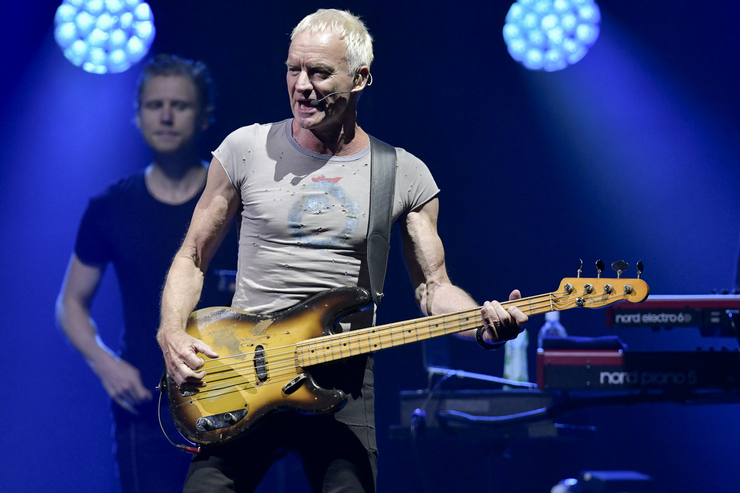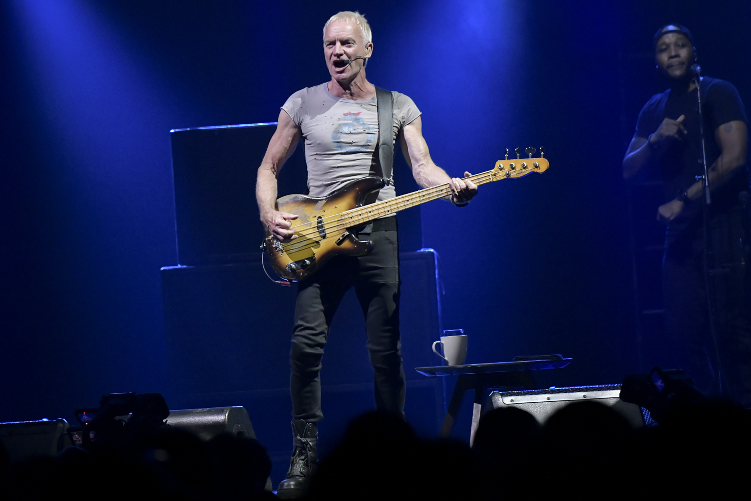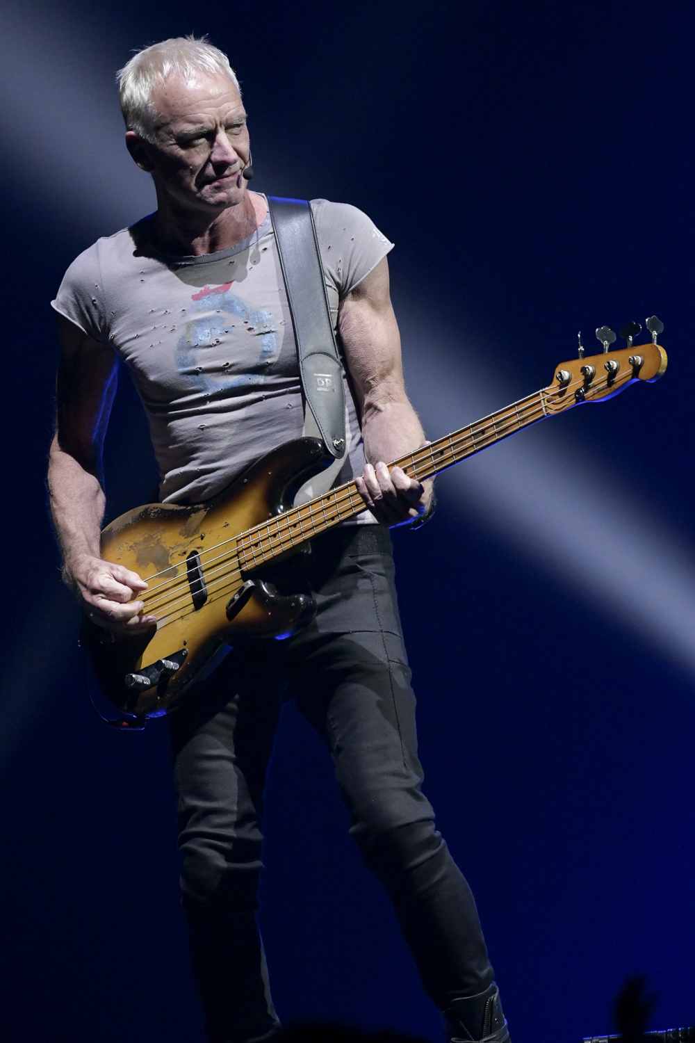 ドミニク・ミラーを中心としたメンバーが定位置につくと、ステージ下手から愛器プレシジョン・ベースを抱えたスティングが歩み出てきた。やや小さめのTシャツと黒い細身のパンツ。鍛え上げたという表現は正しくないのかもしれないが、無駄な肉はまったくなく、71歳という年齢が信じられないほど。