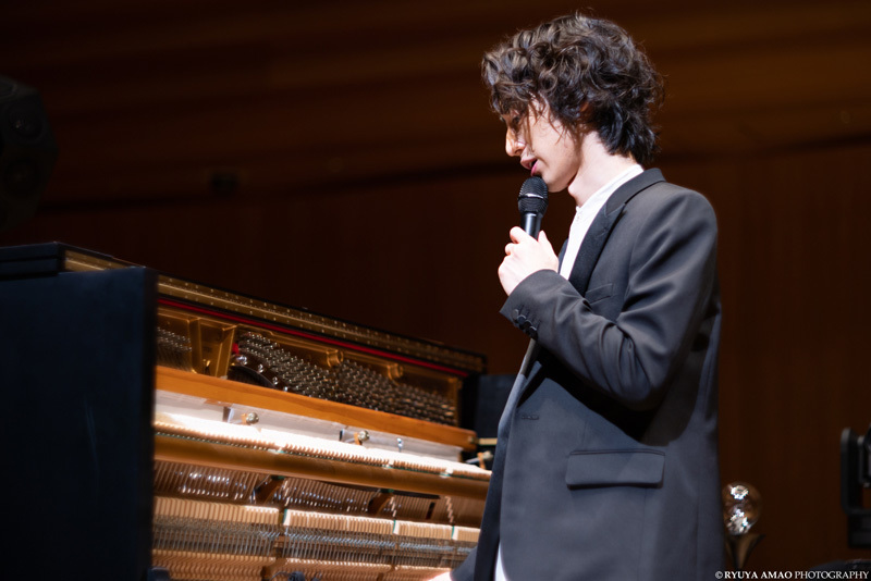 「“Reimagine”の意味は再構築、(クラシック音楽の魅力を)新たにとらえ直すという思いをこめてつけました。古いものを新しく感じたり、異なる音楽に親和性を感じたりする経験をしてもらえたら」。演奏後こう語った彼は、つづいて16公演のツアーをともにしてきた傍らのアップライトを紹介。「アップライトの音の、やさしさと懐かしさが好きです。ひとり部屋で弾いているような、内省的な魅力がある」と添えた。