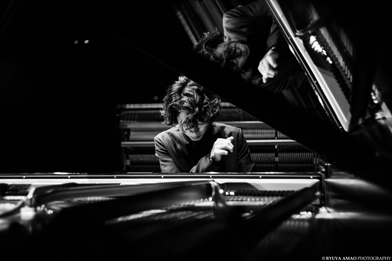 後半は、角野隼斗による「胎動」でスタート。ショパンのエチュードOp. 10-1からインスピレーションを受けて作られた、未来への希望の曲だ。つづく「Human Universe」は、角野が愛する宇宙への旅。バロック風の旋律が自由に壮大に展開していき、天空をかけめぐって地上に帰結する。