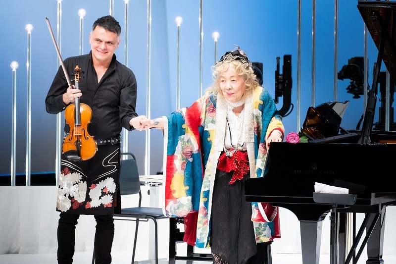 アンコールではイギリスのロイヤル・オペラ・ハウスで第一ソロコンサートマスターを務めるバイオリニストのヴァスコ・ヴァッシレフが、一輪のバラを持って登場。フジコに花を手渡すとブラームスの「ハンガリー舞曲 第5番」とシューベルトの「アヴェ・マリア」を共演。ボディアクションも含めて表現力豊かなヴァスコのパフォーマンスは、フジコの思い出の地・横浜ならではのエキゾティックな色彩をコンサートに添えて、特別な夜になった。