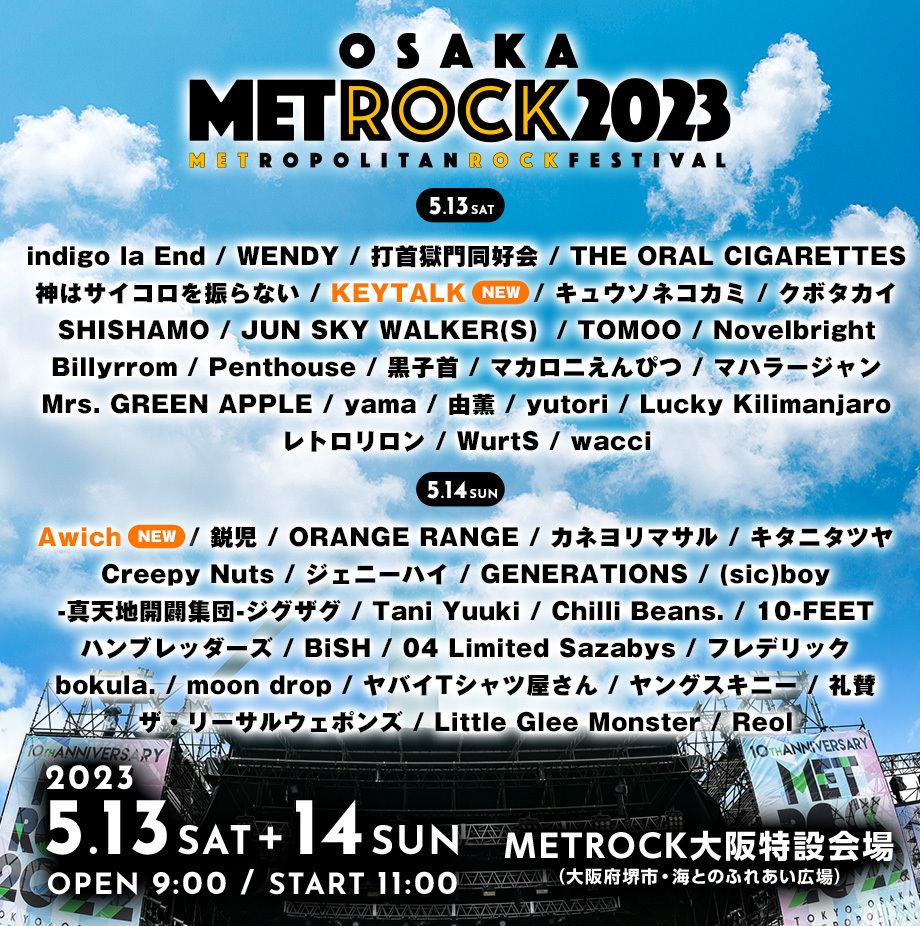 5月13日(土)・ 14日(日)にMETROCK 大阪特設会場(大阪府堺市・海とのふれあい広場)、5月20日(土)・ 21日(日)に新木場・若洲公園にて開催される『METROCK2023』の追加出演アーティストが発表された。