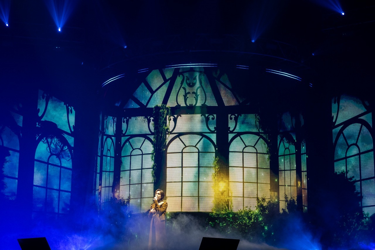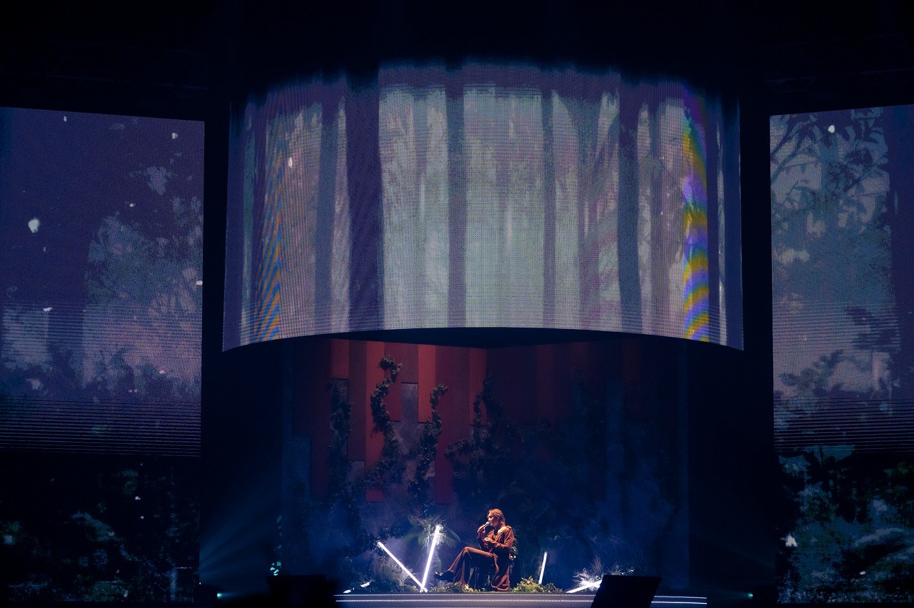 開演時間を迎え、メインステージ背面の大型ビジョンに、色とりどりの花が咲く温室に迷い込むONEWの映像が映し出される――実は、今回のコンサートはかなりコンセプチュアルな構成となっており、映像の要素が、続くステージのイメージとリンクしていく。