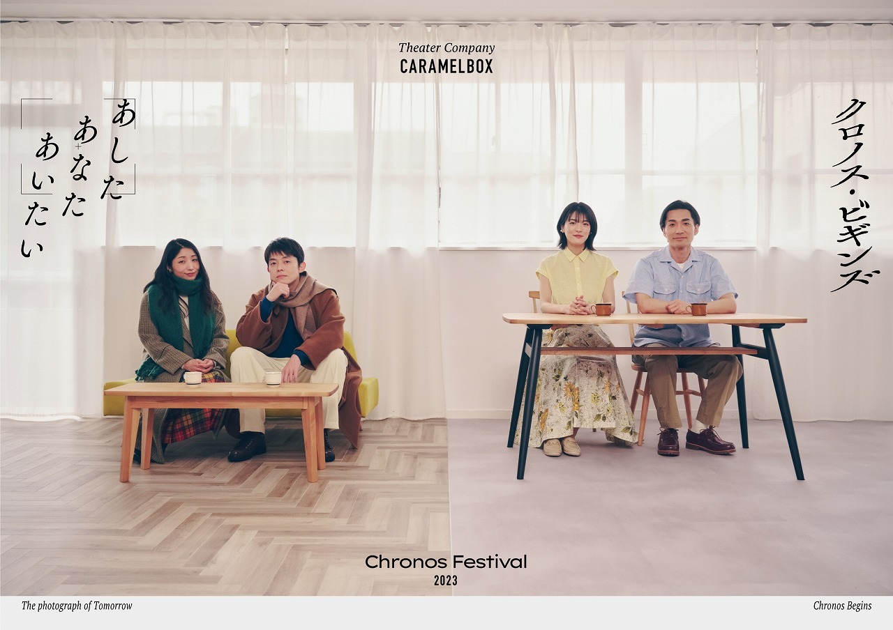 演劇集団キャラメルボックスは、活動休止期間を経て2021年12月に代表作『サンタクロースが歌ってくれた』を持って活動再開を報告していた。今回は、『黄泉がえり』『おもいでエマノン』などで知られる梶尾真治の『クロノス・ジョウンターの伝説』を原作とした、劇団でも人気のクロノスシリーズの二本立てとなる。「クロノス・フェスティバル2023」と銘打ち、 新作『クロノス・ビギンズ』(原作:梶尾真治『クロノス・ジョウンターの黎明』 徳間書店)と大幅に改訂された『あしたあなたあいたい』(原作:梶尾真治『クロノス・ジョウンターの伝説/布川彰良の軌跡』徳間文庫)を、同期間に同じキャストで上演される。