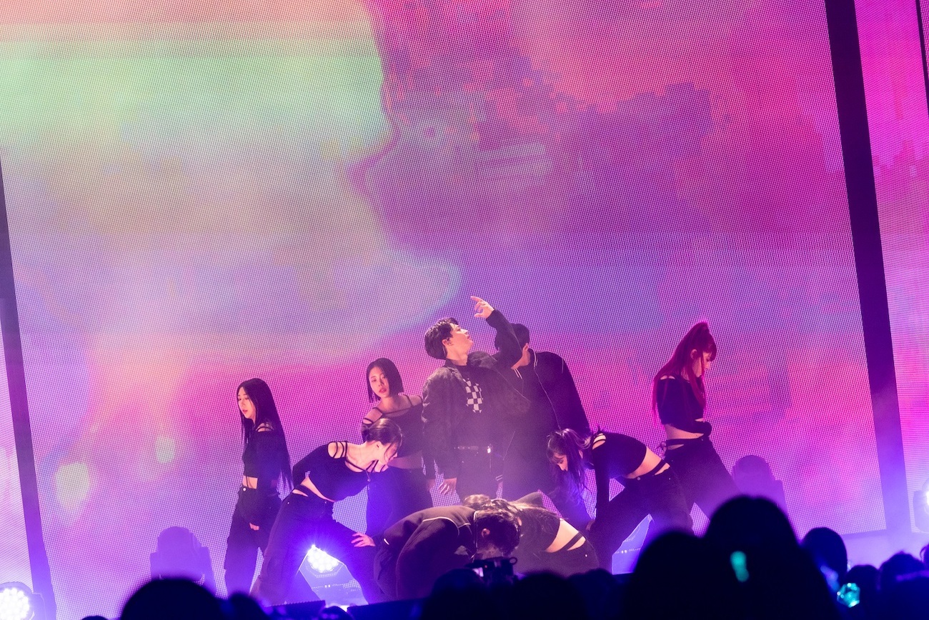 全身ブラックのコーデでステージに戻ってきたMINHOは、なんと日本語カバー曲をメドレーで披露。SMAP「夜空ノムコウ」では優しい歌声を響かせ、久保田利伸「LA・LA・LA LOVE SONG」はダンサーと共に振り付きでパフォーマンス、GReeeeN「キセキ」はステージを歩きながら観客一人ひとりに語りかけるかのように歌を届けていた。