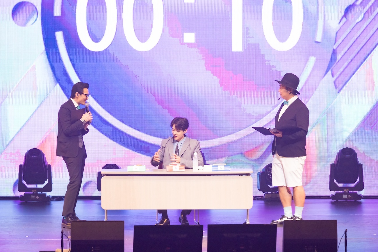 一方、観客へのプレゼントを掛けたコーナーでは、“炎の男・MINHO”の本領を発揮。平井を相手にした勝負では、一切手を抜くことなく全力で挑んでプレゼントの権利をゲット。また客席を巡ってパズルのピースを見つけ、それを完成させることでプレゼントができるというゲームでは、制限時間があるにもかかわらず、それよりも多くのファンと触れ合うことを優先して少々時間オーバーしてしまうことも。ルールの方はどりあんずの機転でなんとかおさめ、無事にプレゼントもできたMINHOはとてもうれしそうだった。