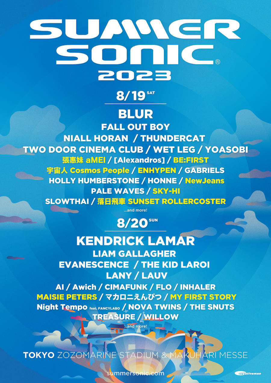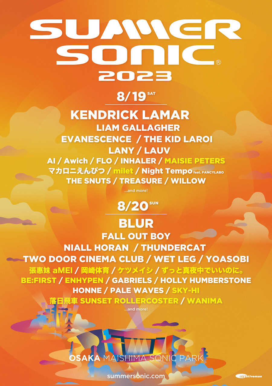 2023年8月19日(土)・20日(日)にZOZOマリンスタジアム&幕張メッセ、8月19日(土)・20日(日)に舞洲SONIC PARK(舞洲スポーツアイランド)にて開催される『SUMMER SONIC 2023』の第3弾追加アーティストが発表された。