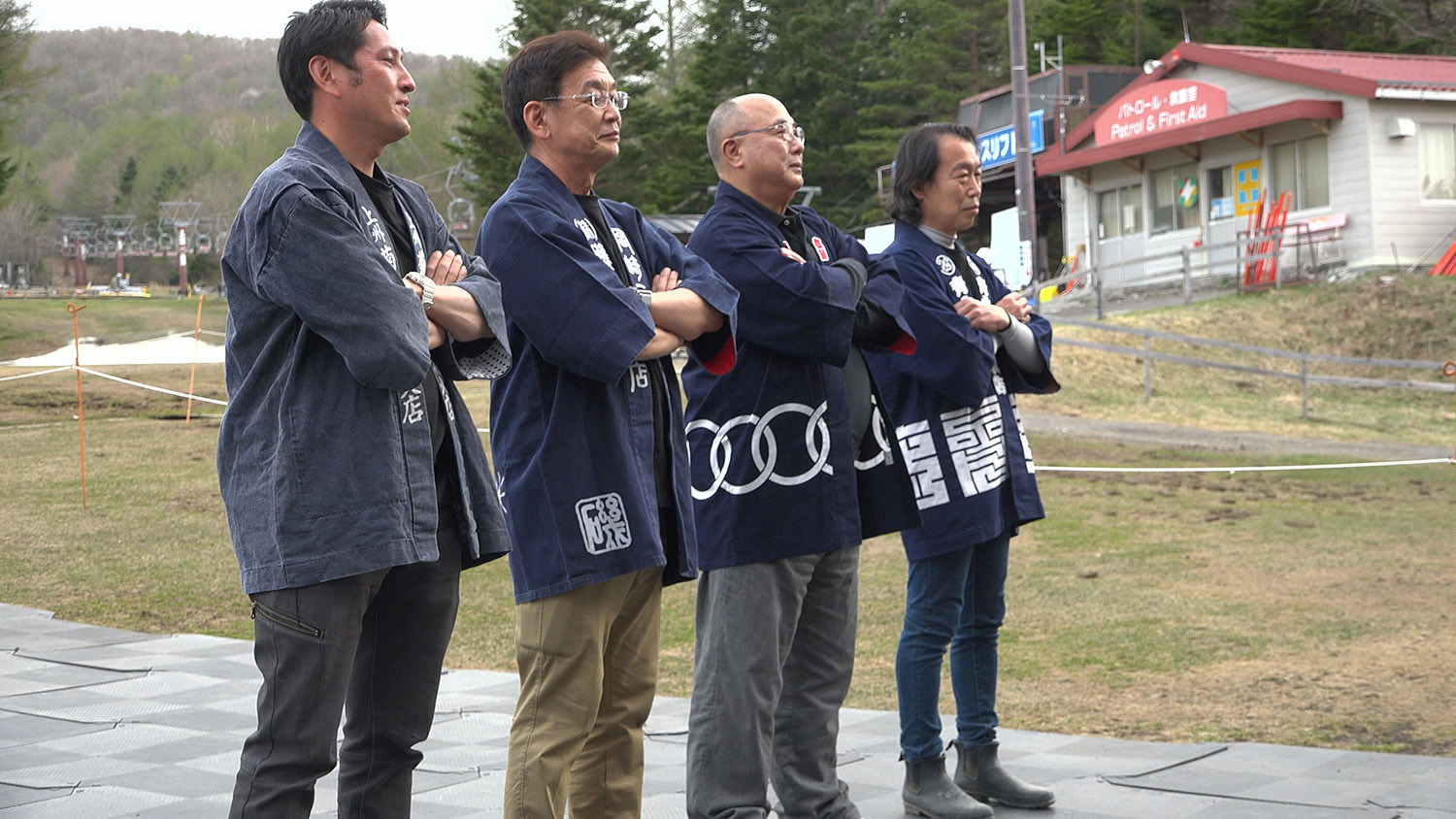 実行委員:これはロマンスリフト頂上に設置した特別席で日本で一番高いところにある観覧席です。ここから下を見ると他の観客席と街並みが見渡せます。