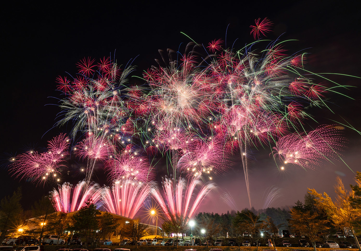 齋木:山梨は我々の地元でもあるのですが、会場はスキー場ということもあって、最初はお客さんが見る位置と花火を上げる位置の配置が難しいなと思いました。でもこれだけの規模の花火を地元で、しかも富士山の麓で堂々と打てるという非常にやりがいのある仕事だと思いました。
