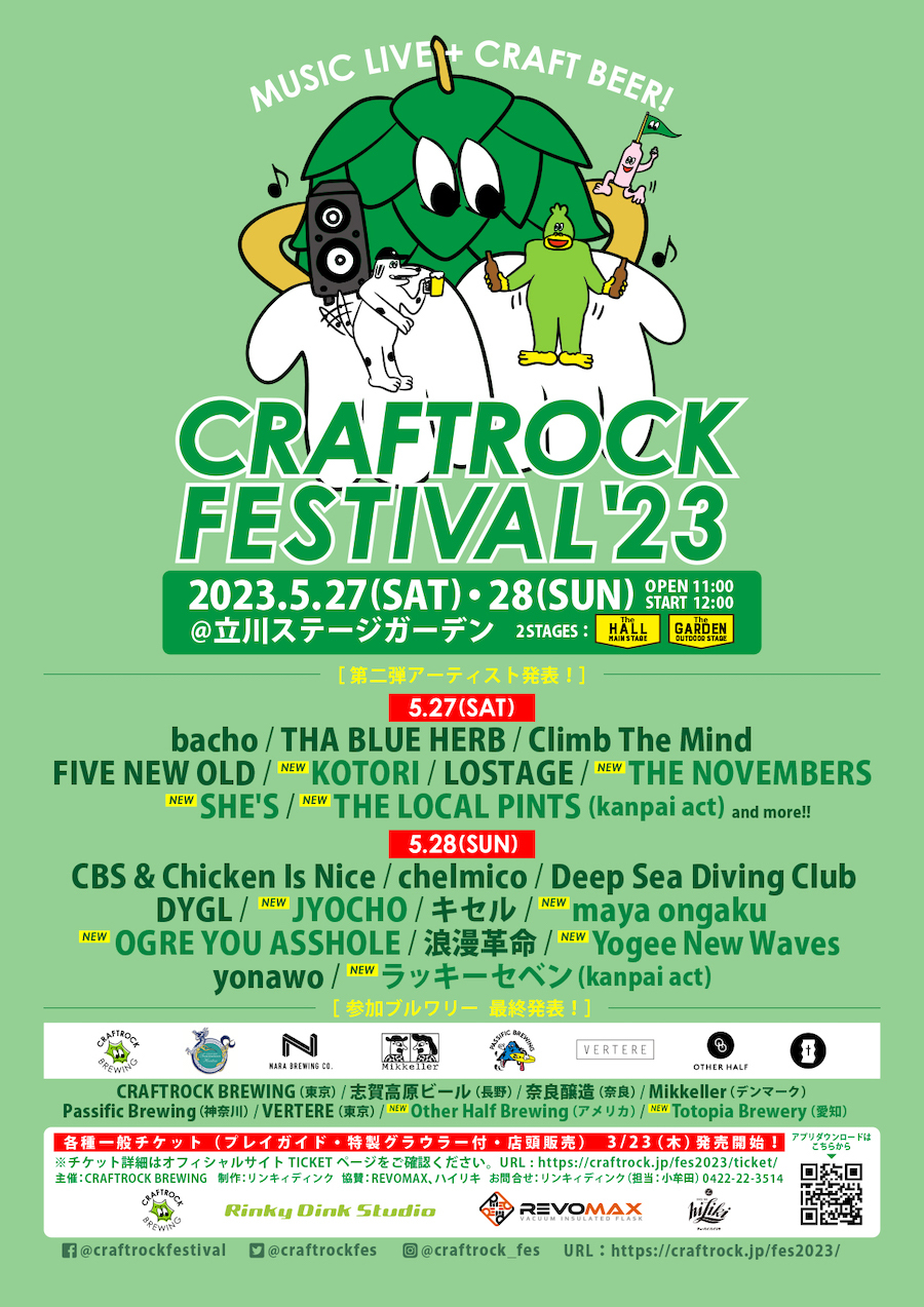 2023年5月27日(土)・28日(日)に立川STAGE GARDENにて開催される『CRAFTROCK FESTIVAL ’23』の第二弾出演アーティストと参加ブルワリーも発表された。