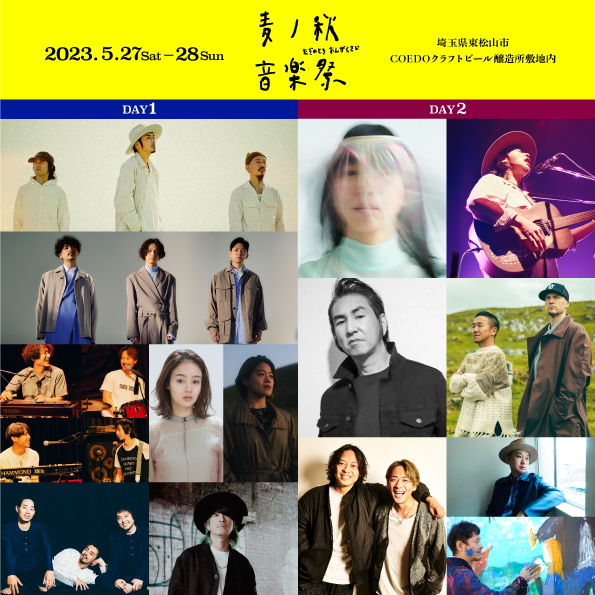 既にキャンプチケットが完売するなど注目を集める同フェス。COEDOビールチケット付きの1日入場券・2日通し入場券はまだ入手可能となっているのでチェックをお忘れなく。なお、前回の同フェスの模様を収めた『麦ノ秋音楽祭2022ダイジェスト映像』もYouTubeで公開されている。