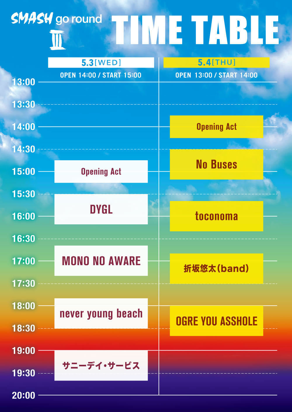 5月3日(水・祝)・4日(木・祝)に大阪城音楽堂で開催される『SMASH go round III』のタイムテーブルが発表された。