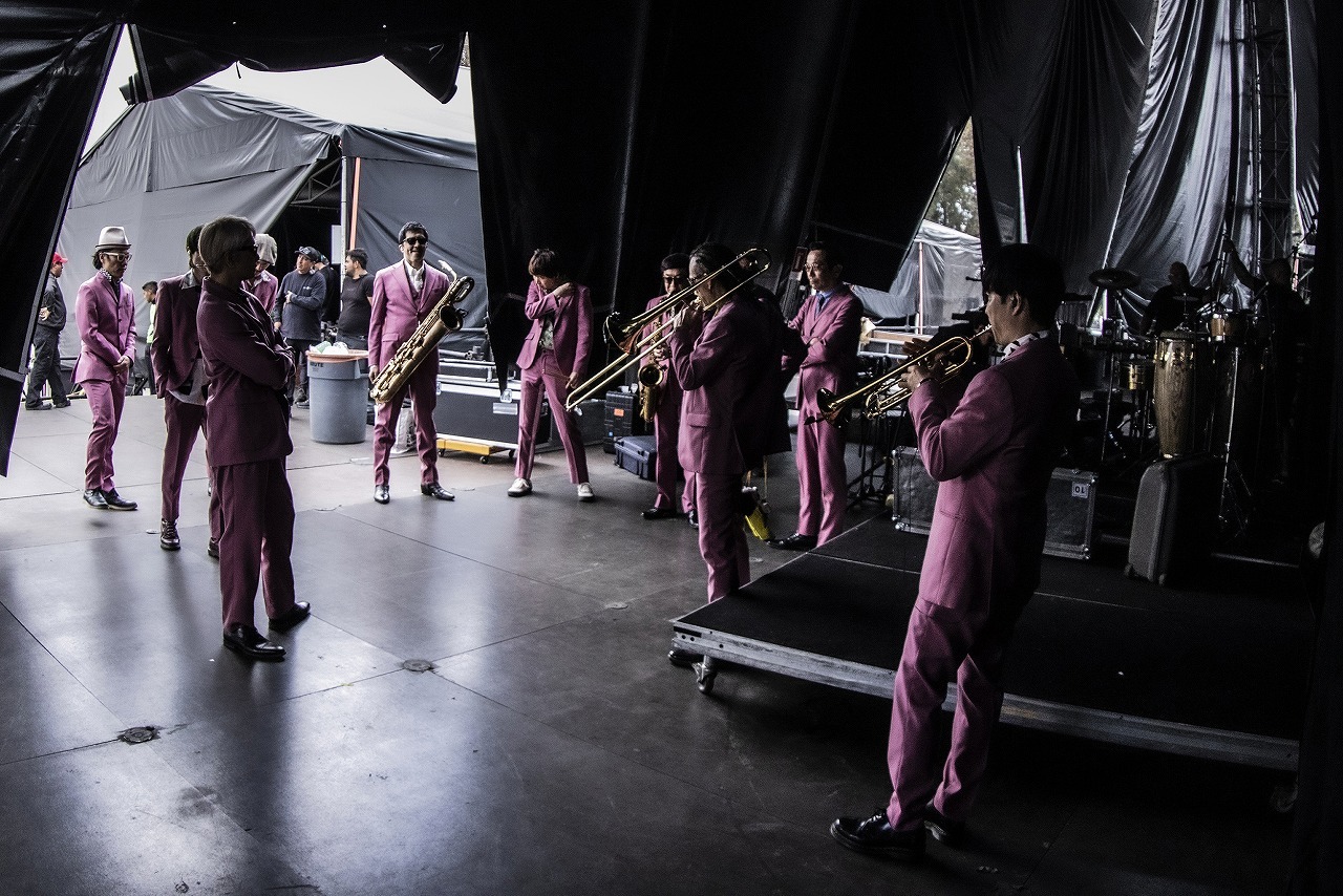 開演時刻が近づくにつれ熱狂的なメキシコのスカパラファンから「オーレ―、オレ、オレ、オレー、トーキョー、トーキョー♪」と大合唱が幾度となく沸き起こる。ステージ裏にスタンバイしているスカパラメンバーからは緊張感と気合と9人それぞれがメキシコに懸ける想いが混沌とし、不思議な空気感に包まれている。