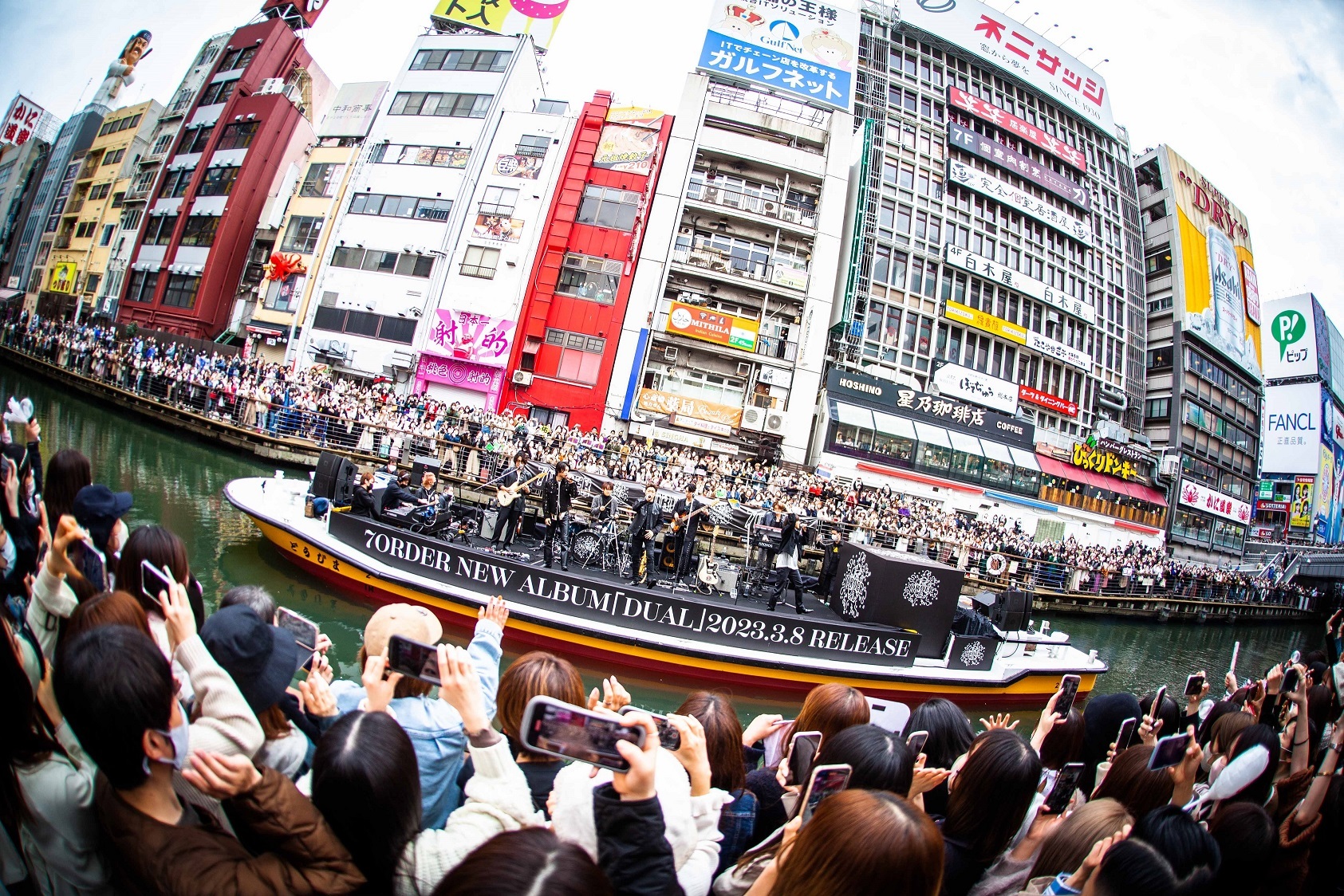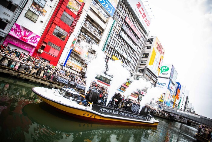 7ORDERが、2023年3月25日、大阪・道頓堀でサプライズ船上ライブを行った。