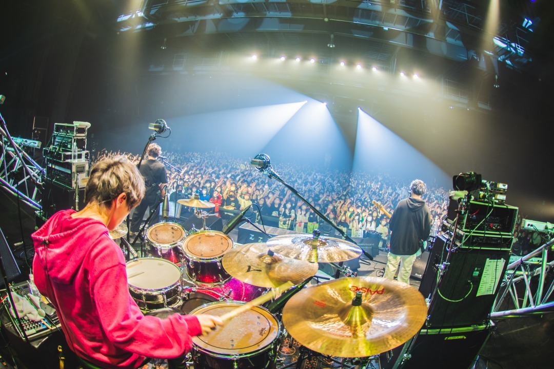 「ここからはみなさんと一緒に作っていくライブです!」と達也が告げて始まった「アンリズミックアンチ」、「Needle return」、「Refutation」と続き、「3年も我慢したんで、すげぇ良い景色見せてもらって良いですか? 飛び跳ねろ!」と、バンドスタイルにもとらわれない自由な表現で会場中を踊らせて、この日のクライマックスを生むと、3年越しのリベンジにいよいよとどめを刺す時が来る。