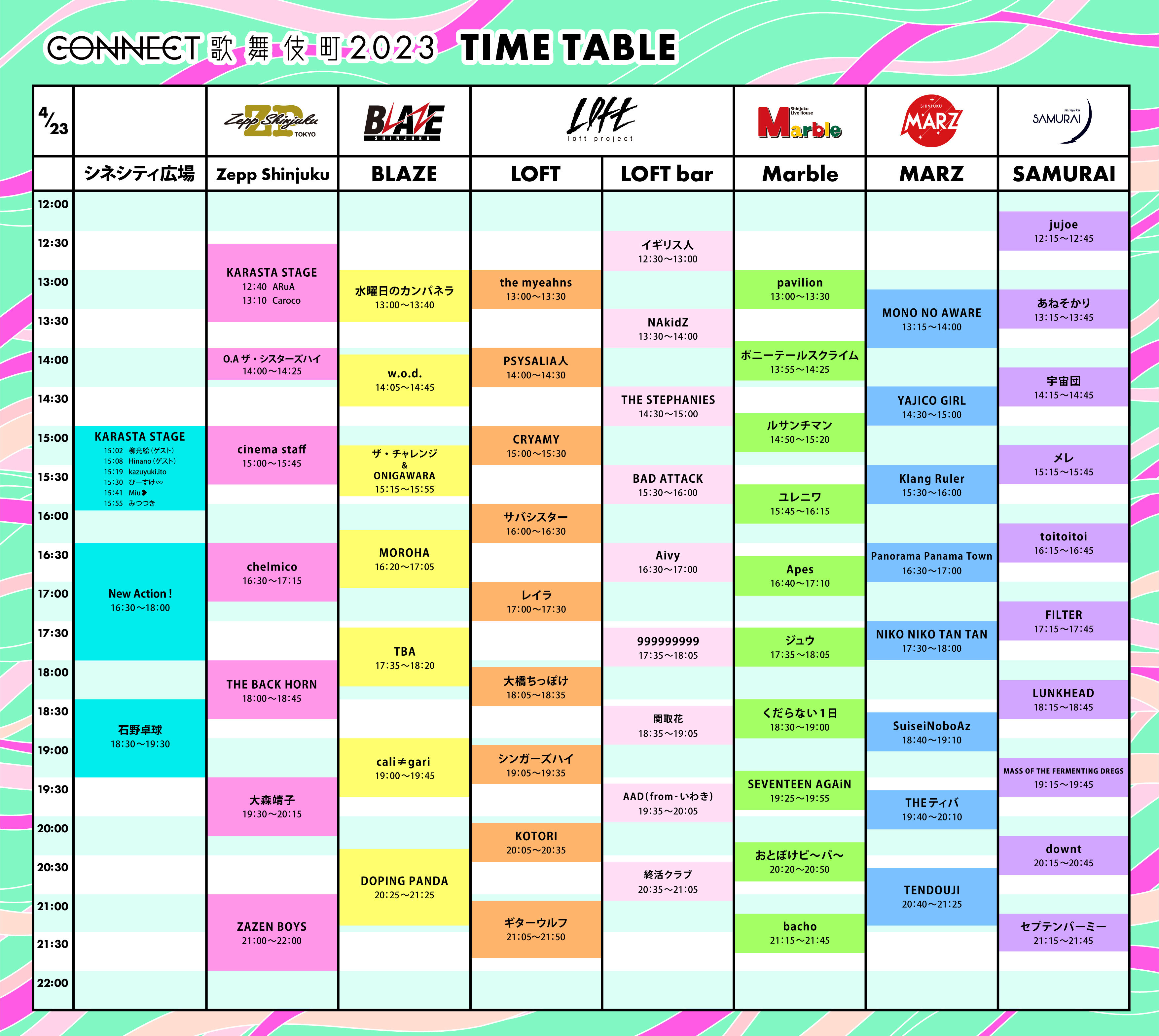 『CONNECT歌舞伎町2023 Move to New Order』タイムテーブル