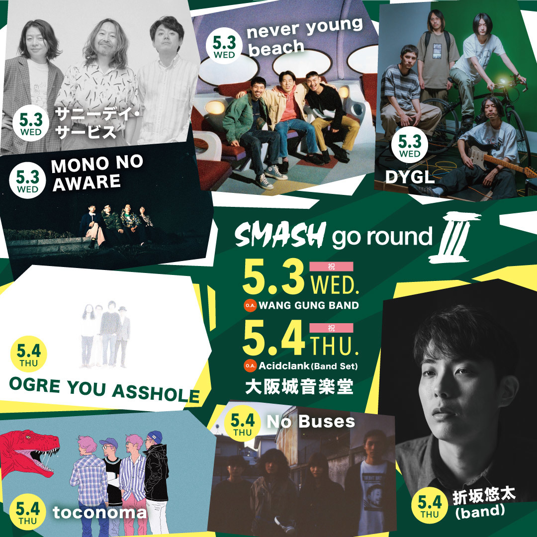 海外、国内のアーティストのライブコンサートをプロモートし、FUJI ROCK FESTIVALなどを主催するコンサートプロモーターSMASHが企画するライブイベント『SMASH go round』。第3回は初の大阪、そして野外での開催が決定している。
