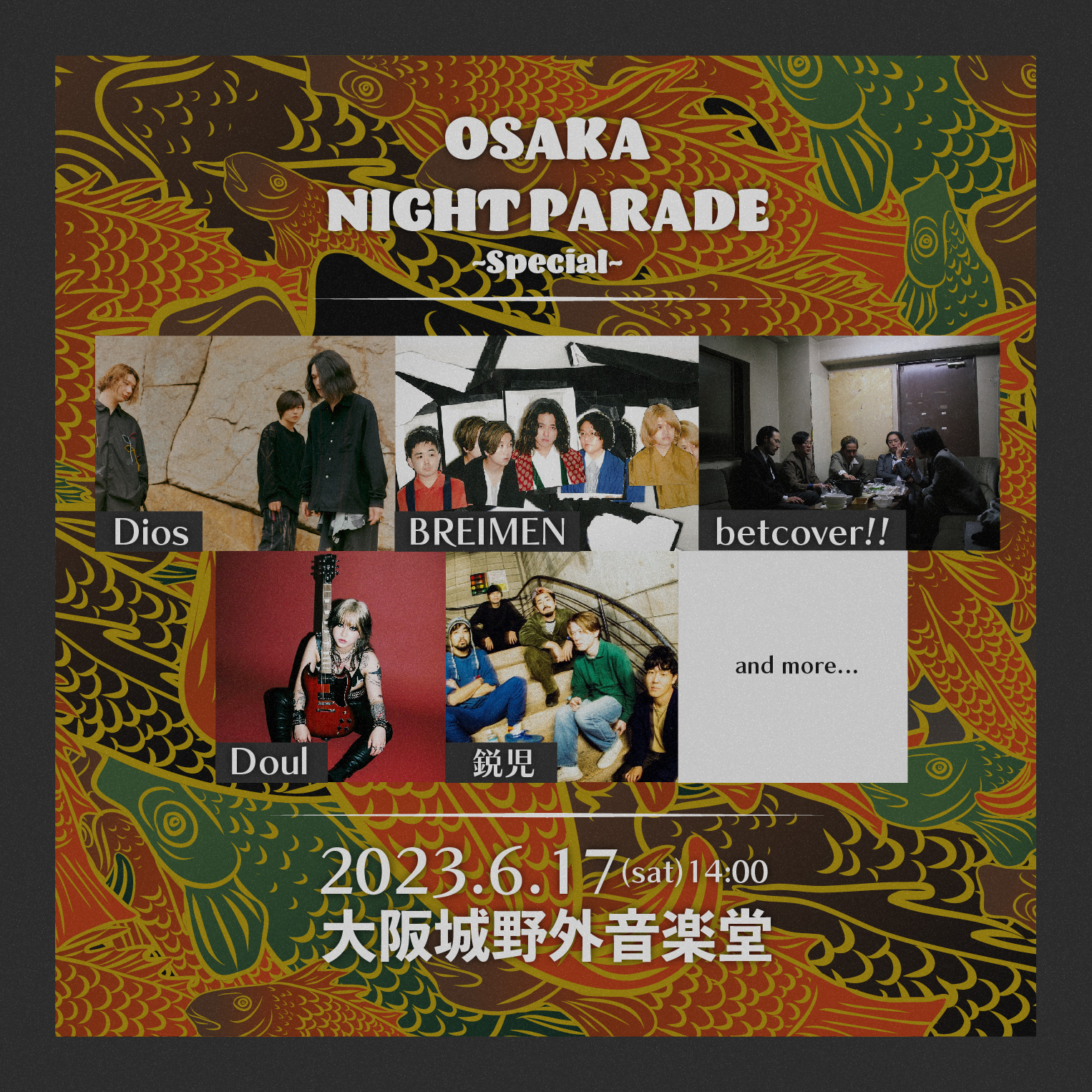 過去に開催されてきた公演では、今見ておくべき注目のニューカマーが数々出演し、その後飛躍したアーティストも。今回のイベントでは、鋭児、Dios、BREIMEN、Chilli Beans.など、これまで『OSAKA NIGHT PARADE』『YOUNG POP CLUB』に出演してきたアーティストや、人気急上昇中のアーティストが集結。当日は、飲食ブースなどの出店ラインナップにも期待しよう。