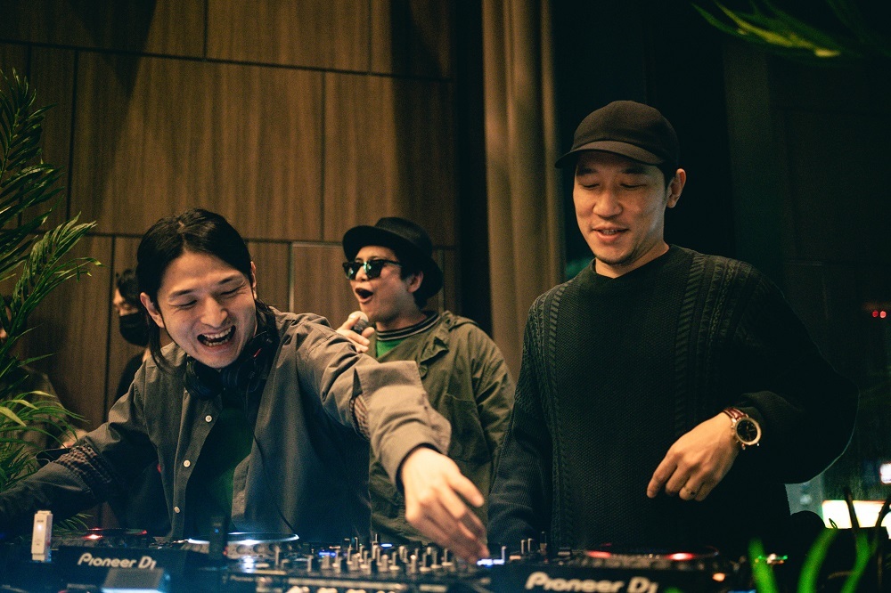 15MUSのライブが終わると「This Is Modern Disco」というフレーズが光るSEからYOSA & TAARのDJが始まる。現在活動休止中のAttractionsからTaro Abeが駆けつけマイクを持つ。そしてAbeを迎えたオリジナル曲「T.B.T.」が流れると場内は一気にヒート。『MODERN DISCO』というパーティを中心に渋谷でディスコ/ダンスミュージックの真ん中を更新し続ける二人のプレイに、イベント目的ではないであろうスクランブルスクエアの買い物客もどんどん集まってきた。