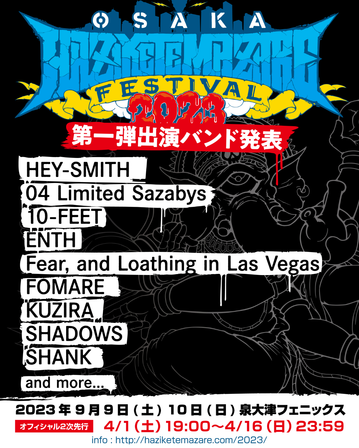 HEY-SMITHが主催するライブイベント『OSAKA HAZIKETEMAZARE FESTIVAL 2023』の第一弾アーティストが発表された。