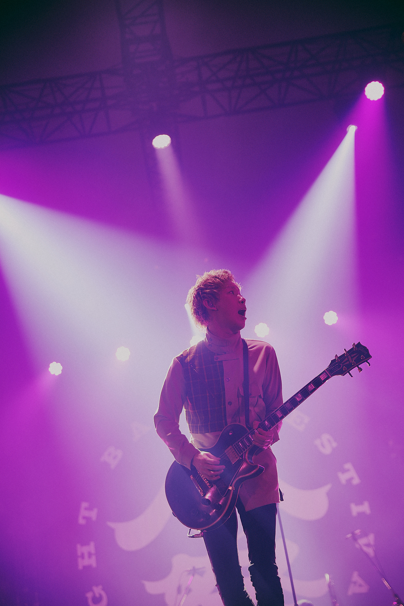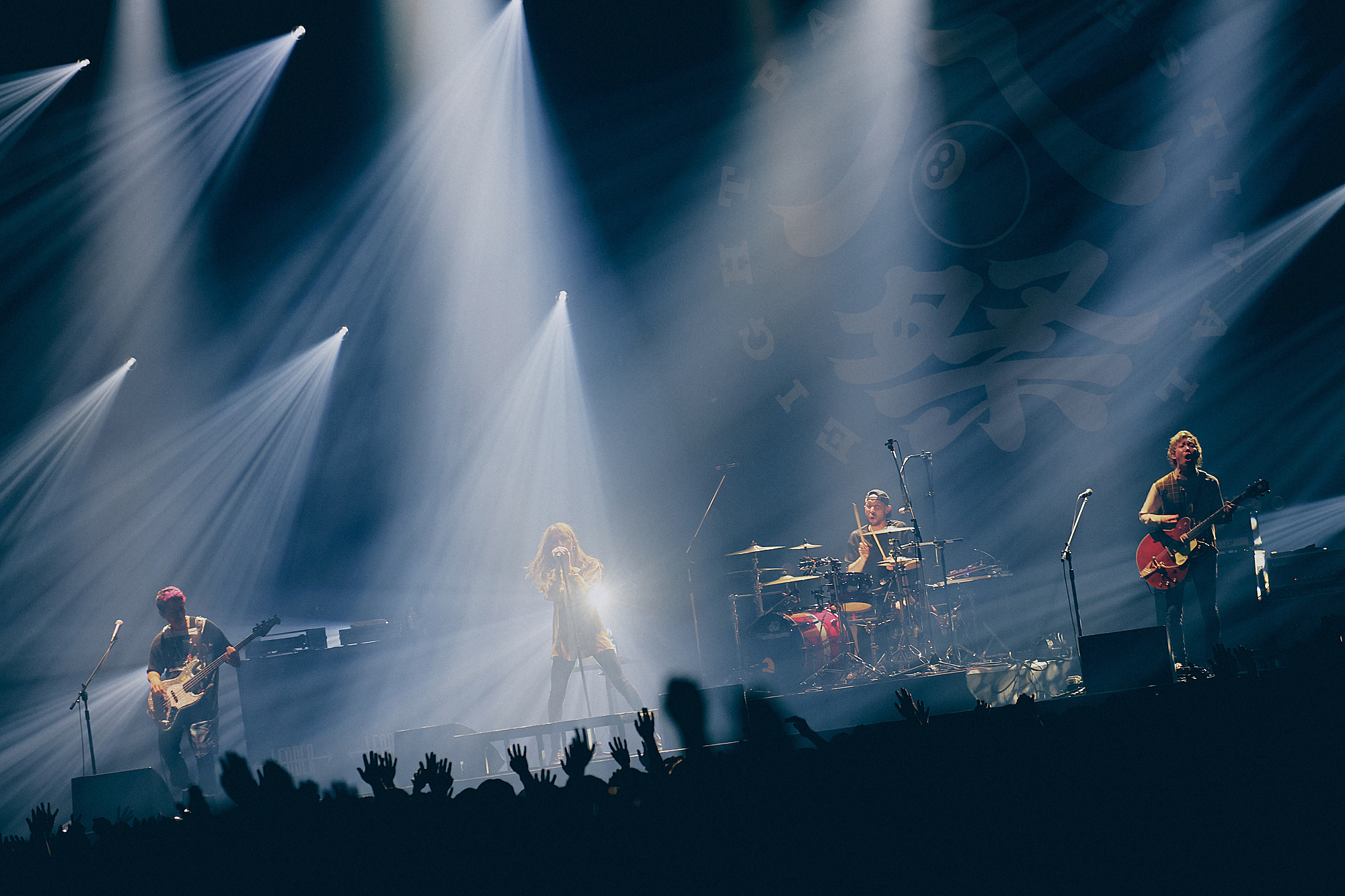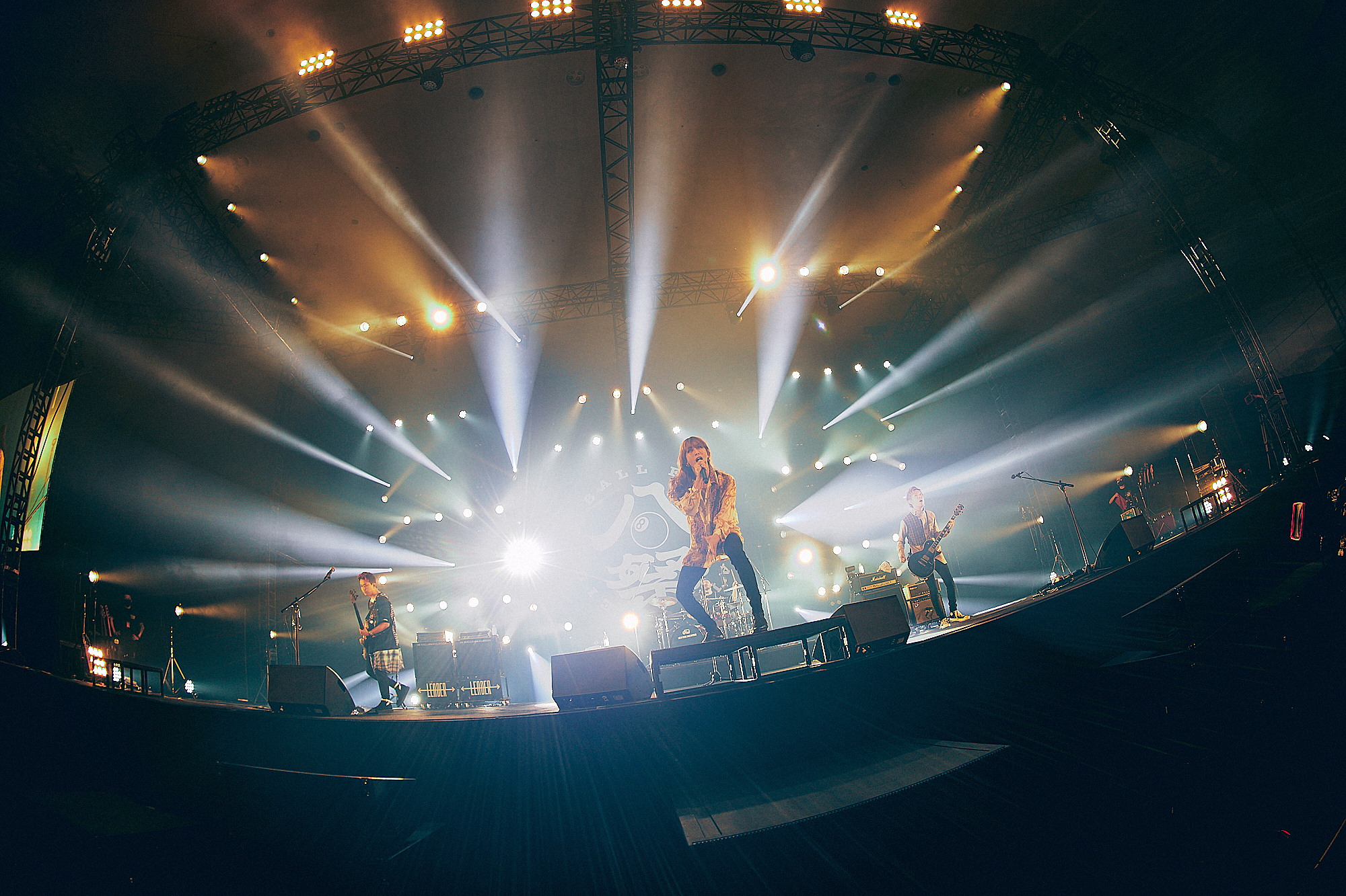 「地に足つけてここまでやってきたんだ! あなたとこの場所で会うために」と告げるや、ソリッドなギターがいざなった「ひたむき」での、360°どこを見てもクラップという光景はまさに壮観! 続いても「名前を呼ぶよ」と絶え間なく続くアンセムに、4人が歩んできた長い道のりを心地良く突き付けられる。ここで、一日を通してまったくもってタフなオーディエンスに大いなる感謝を述べ、バンドの19年目のスタート=4月1日に『EIGHT BALL FESTIVAL』に出演するという縁に、渋谷が改めてこう語る。