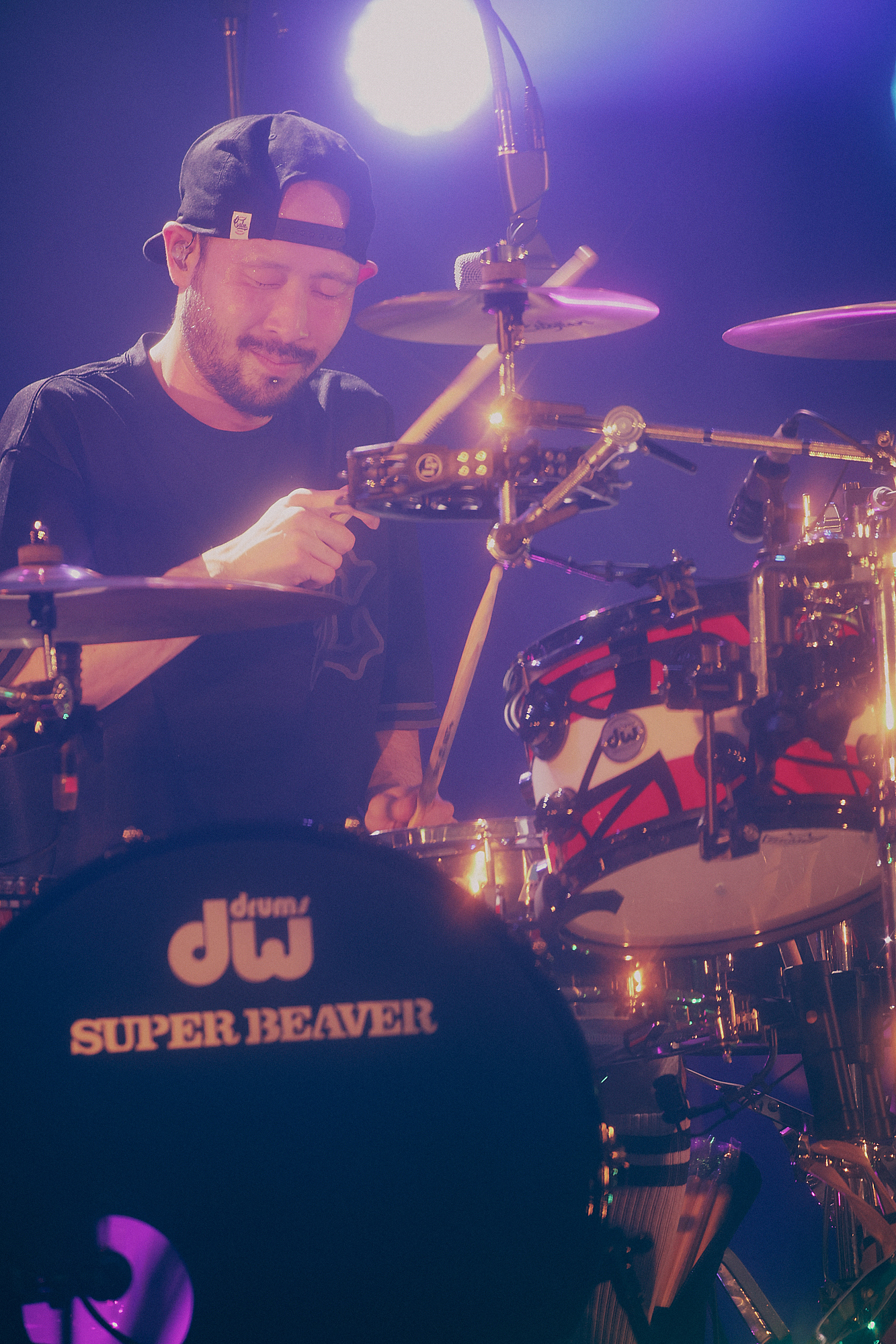 「後ろまで満員御礼、ありがとうございます! トリを仰せつかったのが、今日で19年目を迎えますSUPER BEAVERです。ライブの良し悪しは、俺たち4人がどんなことを伝えるか以上に、あなたがどんなことを俺たちに伝えてくれるのかも、めちゃくちゃ大事で。いいライブをする自信がある人はどれだけいますか?」との問いに、割れんばかりの大歓声で応える観客。「期待してるから、期待してくださいよろしく!」と、どこまで行っても一対一の対峙、共に作り上げる時間と空間。そう今日もSUPER BEAVERはSUPER BEAVERで、会場の隅々から伸びる手と「予感」を奏でていく。コール&レスポンスの間も藤原“34才”広明(Dr)が巧みにボトムを支え、目の前で繰り広げられる光景に、音楽に、今とてつもない力をもらっていることを実感する。
