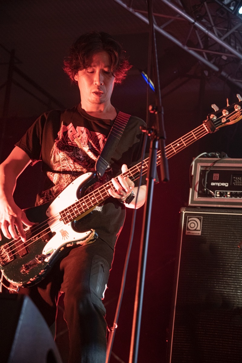 「My Summer」から、次から次に楽曲を投下していくけれど、そのどれもがファストチューンばかり。叫びまくる歌唱に、U.S.G(Gt)の速すぎるビートと、観客は追いつくのに必死だ。「Future」、「This is W day 2」も激しいけれど、しっかりポップでキャッチーで、フロア後方に突っ立っていた観客が気づけば前方でしっちゃかめっちゃかになって、彼らの音を全身で浴びまくっている姿も見える。