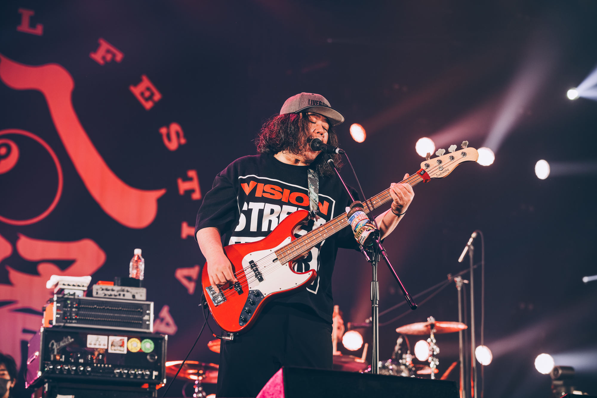 「俺はここにライブをやりに来たというか、忘れ物を届けに来たんだ。コロナもあって、戦争まで起こっちゃってよ。だけど、忘れてないか? フェスができてすげぇってことじゃないぞ。ここに集まったおめぇのことだよ! 忘れてねぇか? おめぇがクソじゃねぇってことを。ダメなヤツなんかじゃねぇって、自分のことを美しいって忘れてねぇか? ここに集まって、今こんな空気を作って。当たり前じゃねぇぞ。皆さん、いろいろあったけど、生まれてきてくれてありがとうございます」
