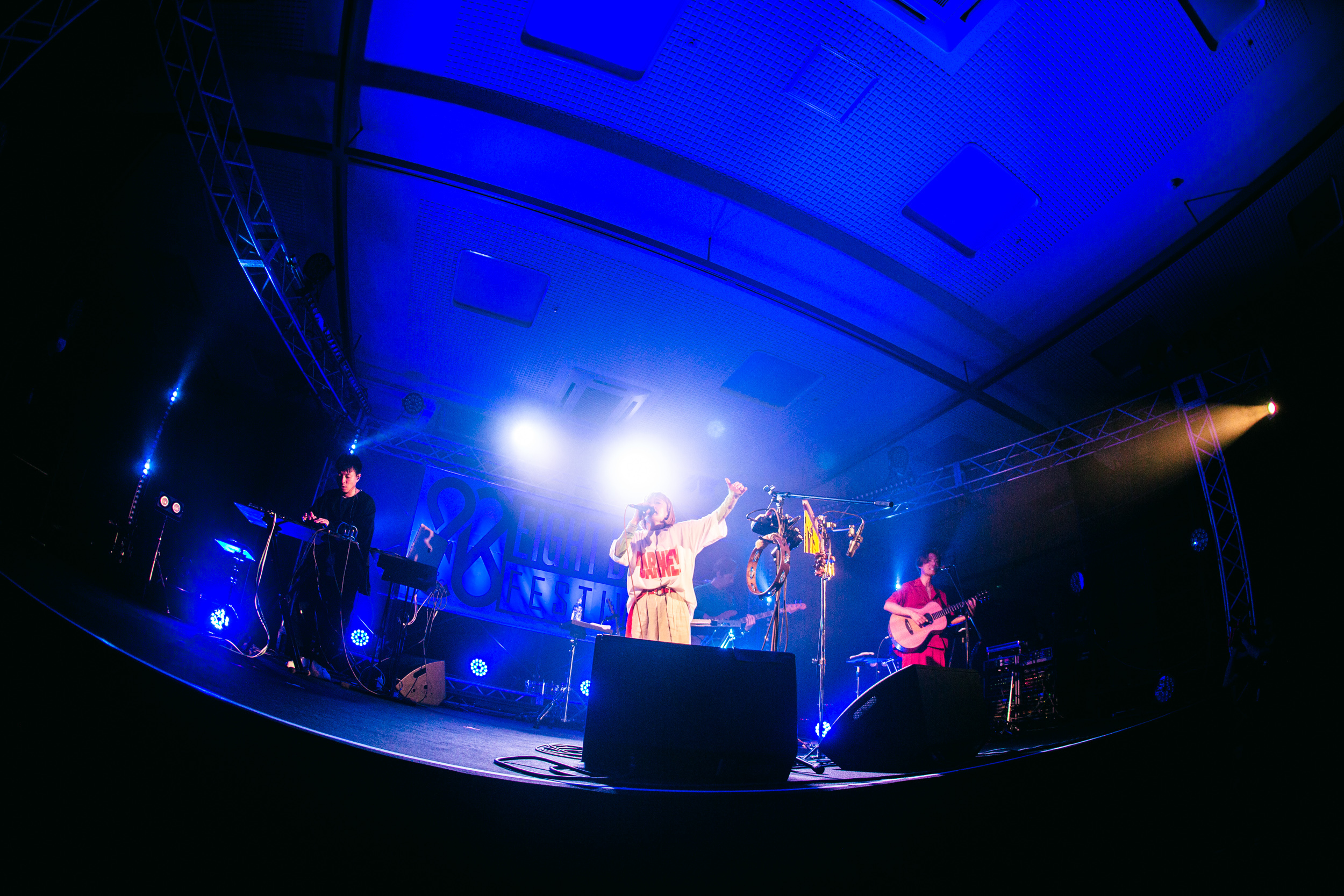 MCでは、ツアーで年に1度は岡山に訪れているもののもっとライブをしに来たいということ、そして初開催のフェスで選ばれたことがいかに光栄であるかと喜びを伝えた。声出し解禁のライブはNakamuraEmiも3年ぶりということから、丁寧にオーディエンスを誘って「YAMABIKO」でコールアンドレスポンス。リリックが突き刺さる「かかってこいよ」で、さらにグルーヴを高め最後の曲へ。