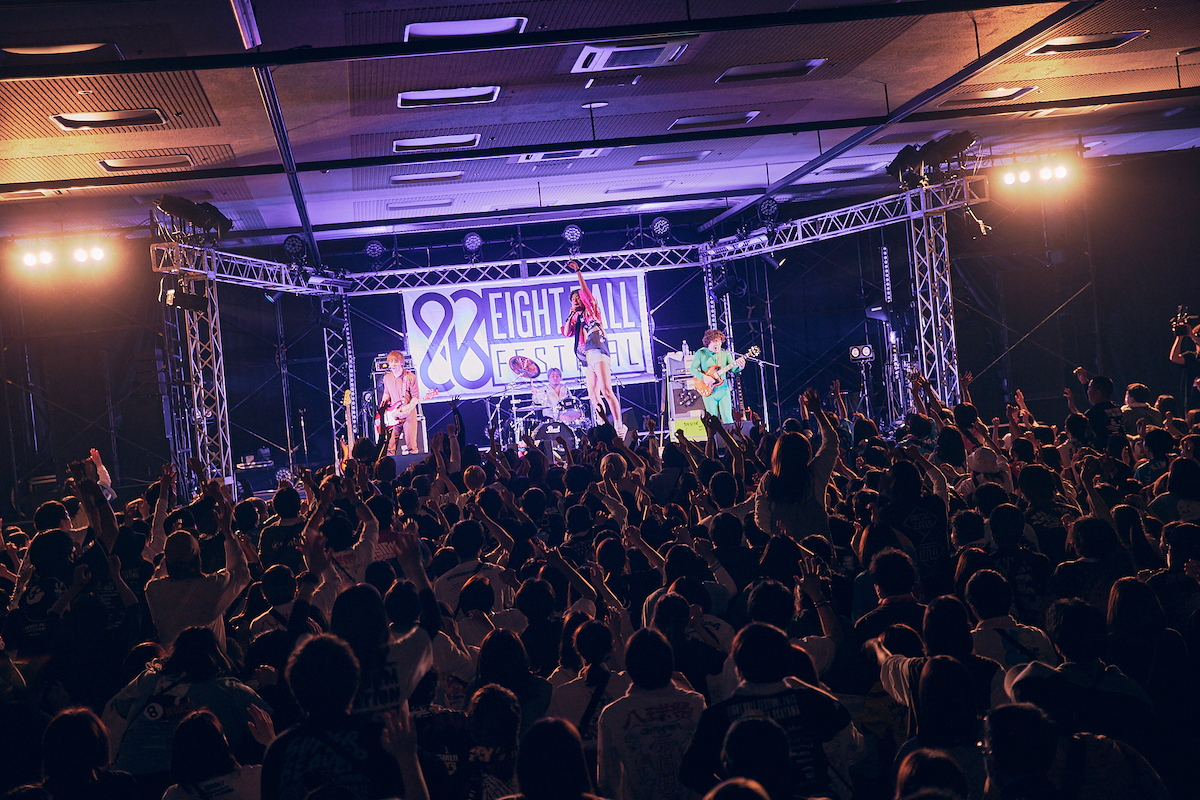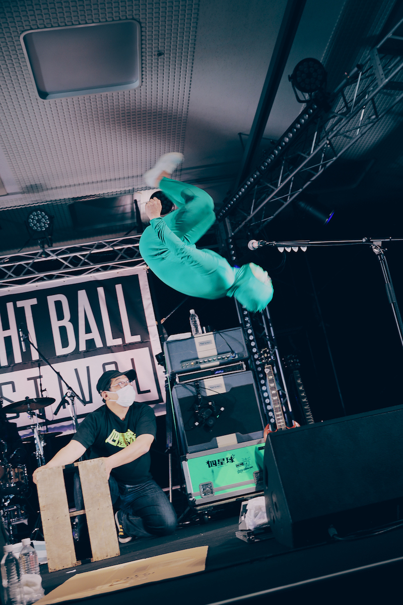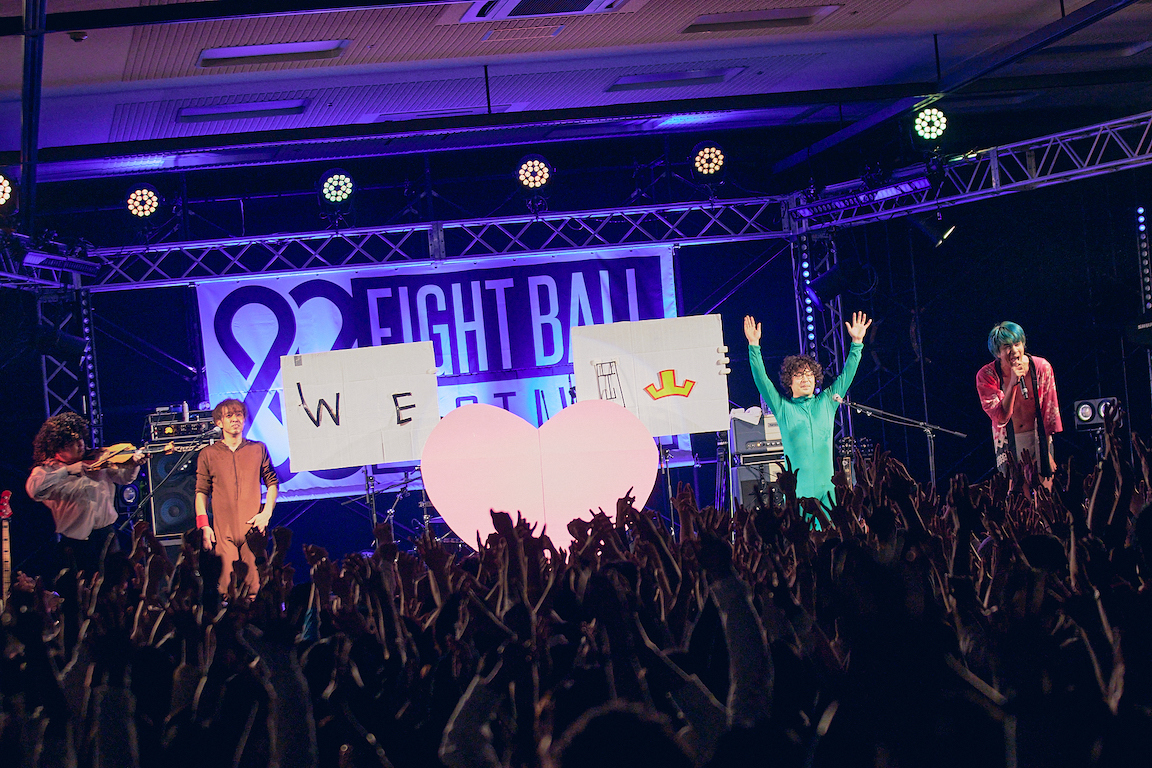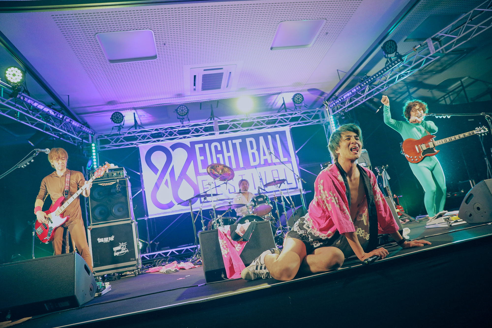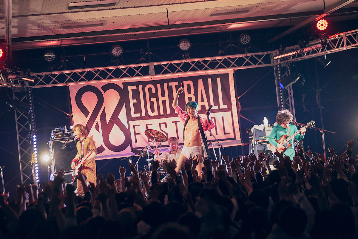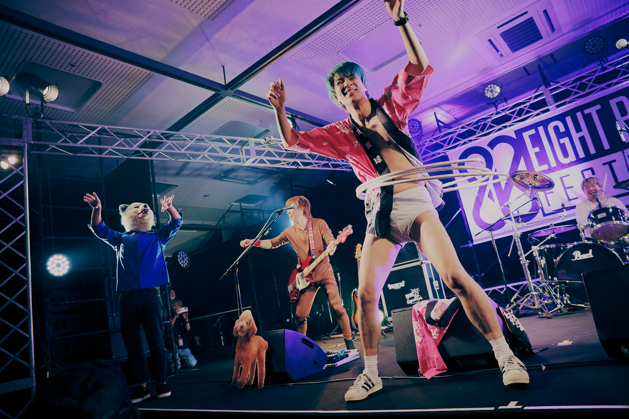『EIGHT BALL FESTIVAL 2023』2日目も、いよいよ終盤に差し掛かるSTRIPED STAGEのトリ前の出演となる四星球。開始前には既にいよいよ入場規制か? という程のお客さんで超満員の場内となった。