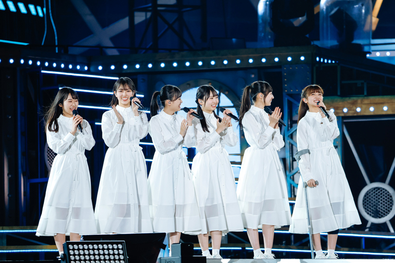 ここからは再びライブパートに。上村ひなのがソロ曲「一番好きだとみんなに言っていた小説のタイトルを思い出せない」を歌唱。2020年のクリスマスライブ以来の披露となるが、声の安定感、ダンスのしなやかさともに大きく成長したところを見せた。この楽曲が生まれた当時、三期生は上村ひとりだったが、当時から上村が「この楽曲はソロ曲じゃなくて三期生曲」と言っていたとおり、遅れて加入した髙橋未来虹、森本茉莉、山口も初めてパフォーマンスに参加した。