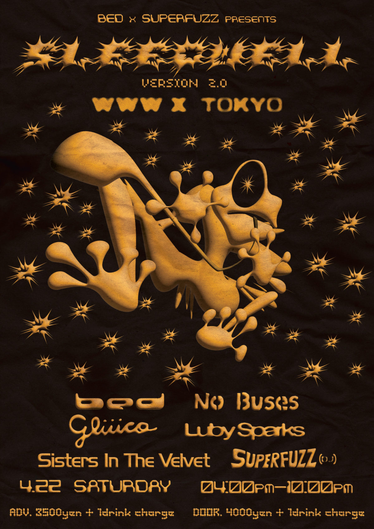 東京都内のライブハウス/クラブを中心に活動するバンド・bedとDJパーティ/クルー・SUPERFUZZが、4月22日(土)に渋谷WWW Xにて開催するパーティー『SLEEPWELL version 2』の追加出演者に、Luby SparksとSisters In The Velvetが決定した。