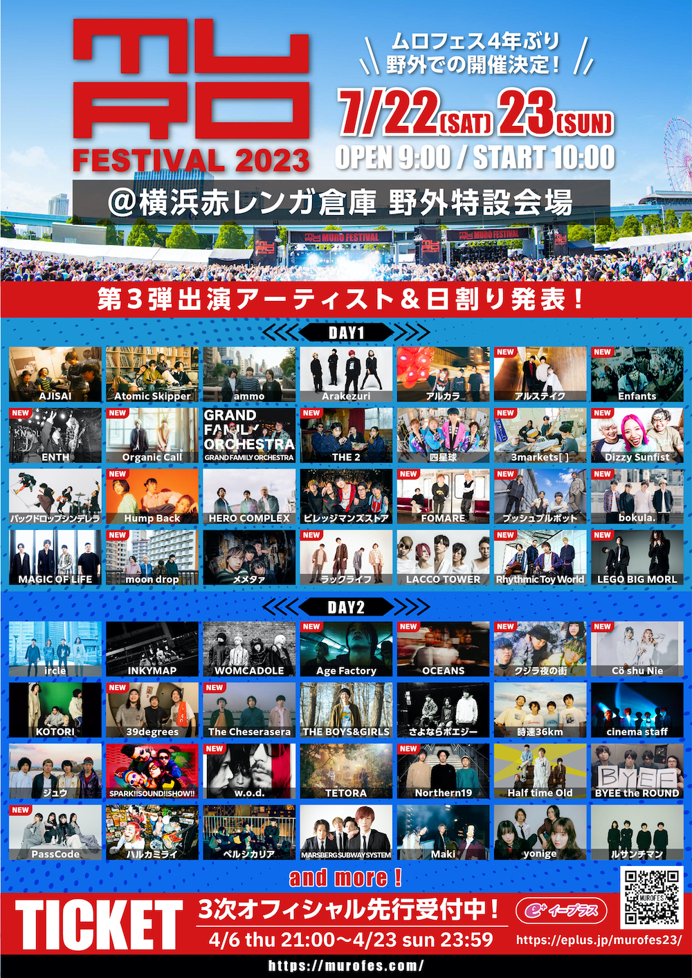 7月22日(土)・23日(日)に横浜赤レンガ倉庫にて開催される『MURO FESTIVAL 2023』の第三弾出演アーティストと出演日が発表された。