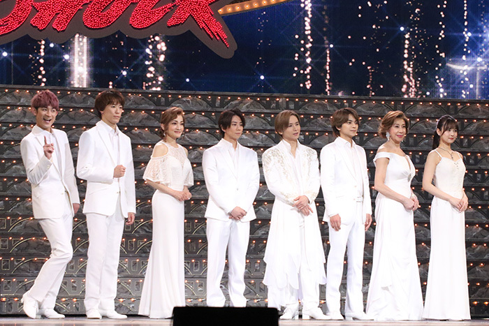 (左から)松崎祐介、越岡裕貴、島田歌穂、北山宏光、堂本光一、佐藤勝利、前田美波里、中村麗乃
