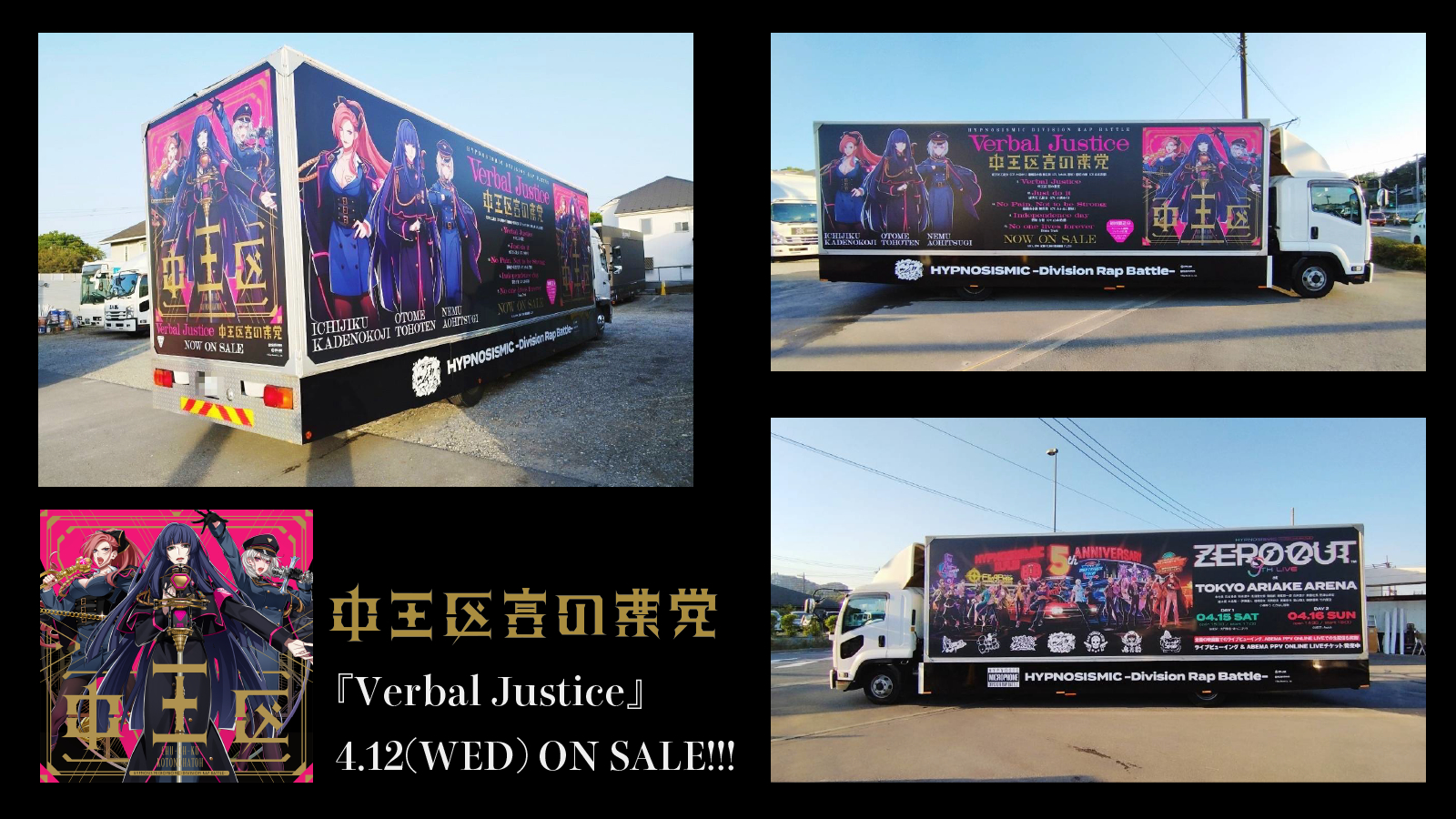 『ヒプノシスマイク -Division Rap Battle-』中王区“言の葉党”のCD『Verbal Justice』が4月12日(水)に発売、これにあわせてアドトラックが6都市を巡ることが発表となった。
