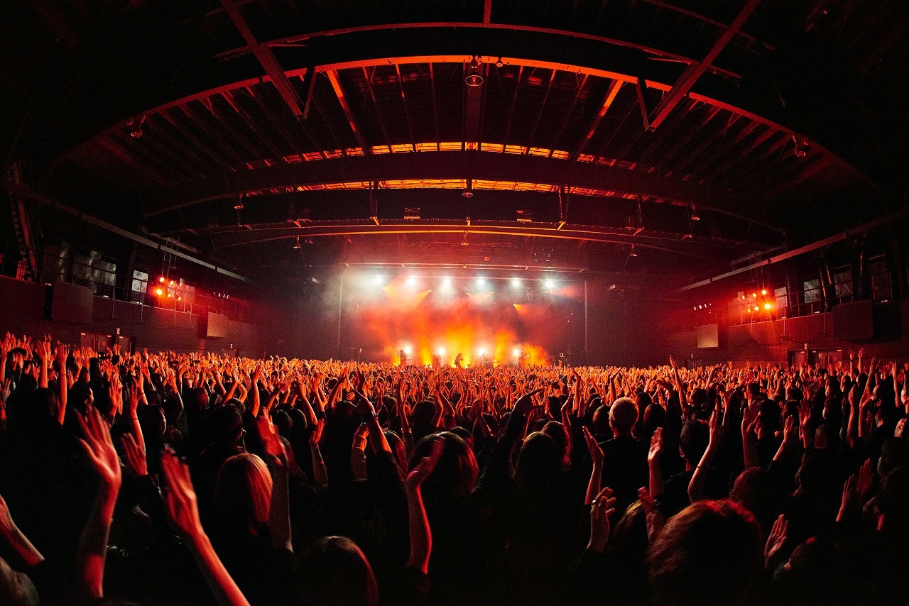 彼らの動員力を考えれば当然のごとく、日本最大級のライブハウスをオーディエンスで満杯にしたツアーファイナルは、予定調和と想定外のミクスチャーで幕開けた。アルバムと同じく「COUNT-10」をSEに、ステージの上部で輝く“M”を象った『MASS』のロゴマークから赤い光が伸びていくオープニングは、3本のツアーを通して一貫するもの。神聖にして狂暴な音と声が荒れ狂うエモーショナルな「BLINDING HOPE」で始まり、「ROLLIN’」が一気にフロアのクラップを呼ぶというお馴染みの流れも練度を増して、いっそう場内を燃え立たせていくのだろう……と思った矢先、豊洲PITに魔物が舞い降りた。いきなりの機材トラブルで音が止まり、場内が明るくなるや、しかしRUKI(Vo)は「押忍!」と茶目っ気たっぷりに挨拶して、「バンド21年やってるけど2曲目、ツアー最終日でトラブルは、ちょっとビビったわ。今のお前らのテンションが着火したね」と至極平然。仕切り直しての「GUSH」では「揺らせ!」という彼の号令に従い、とにかく一つになろうとバンド、オーディエンス共に死力を尽くして、想定以上の熱気を生み出していく。トラブルも丸ごと楽しむことのできる懐の深さ、それをフロアの高ぶりへと変換する手腕の巧みさは21年のキャリアの賜物。加えて、3本のツアーを通して磨き上げてきたライブ構成が“何が起きても大丈夫”という一種の安心感を、ファンに与えていたことも事実だろう。