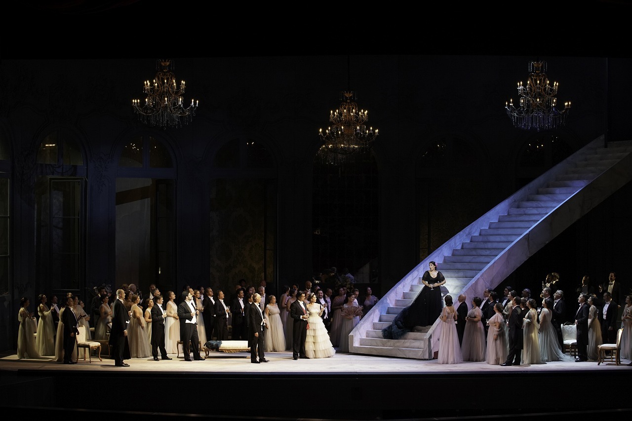 上演される『椿姫』は2018年の日本公演で上演して大評判になった女流映画監督ソフィア・コッポラ演出によるもの。女性をテーマとした映画で手腕を発揮するコッポラは、極端に設定を変えることなく、ヴィオレッタの愛とその生き様を深く描き出すことに成功。ハリウッドで数々の大作を手がけるネイサン・クロウリーが創る世界をイタリア・ファッション界の重鎮、ヴァレンティノ・ガラヴァーニによる本物のオートクチュール・ドレスをまといながら生きるヴィオレッタ。その外見が華やかで美しいがゆえに“裏社交界”の翳りとともに彼女の苦悩が強く迫ってくる。今回の日本公演には、ヴィオレッタに世界中の歌劇場から引っ張りだこで『椿姫』や『ルチア』において華麗なコロラトゥーラを聴かせるリセット・オロペサ、アルフレードに美声にして美形、端正な歌い方でイタリア随一の実力派と認められるフランチェスコ・メーリ、そしてジェルモンには初来日とはいえ、ヨーロッパでは引く手あまたの活躍をみせているアマルトゥブシン・エンクバートが登場。いまが盛りの歌手たちによる声の饗宴が繰り広げられる。