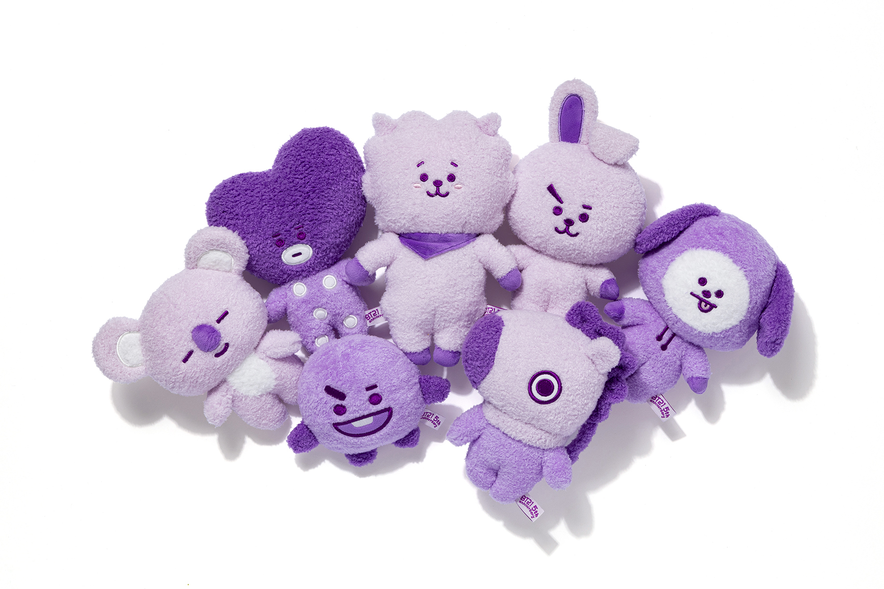 「BT21 5周年記念 レインボーカラーぬいぐるみ パープル」(全7種) 価格:各2,420円