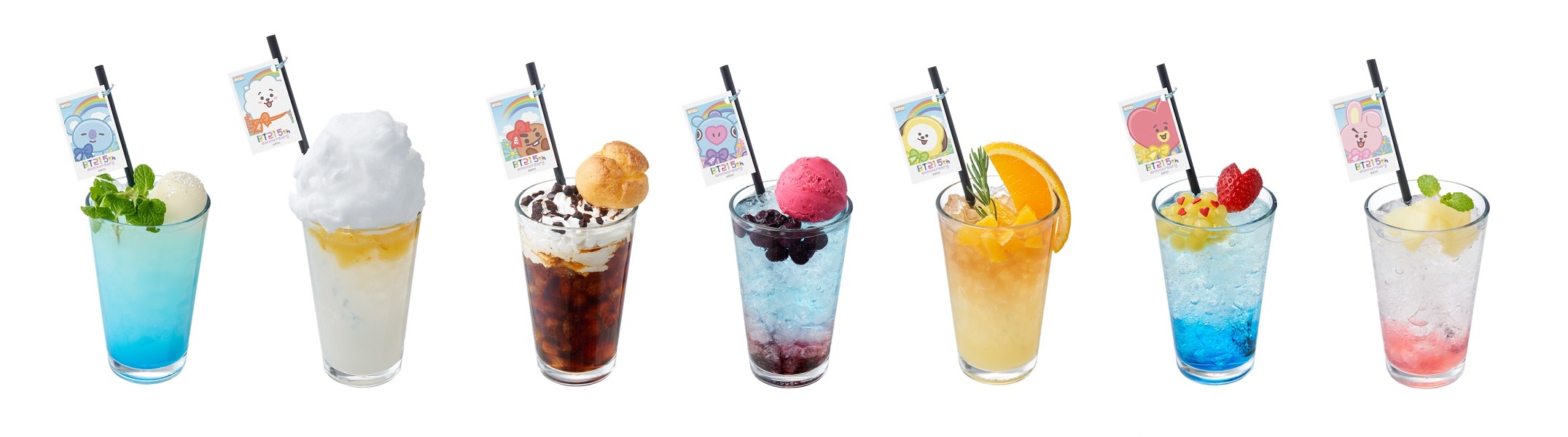 【東京会場限定】デザート&フード KOYAの夢見る 青空ドリンク・グルメなRJのふわふわ新感覚ドリンク・SHOOKYのほろ苦ショコラコーヒー・MANGのシュワシュワ♪ダンシングベリー ・CHIMMYのハッピーシトラスティー・TATAの弾けるタピオカソーダ・COOKYのラブピーチソーダ 価格:各1,200円