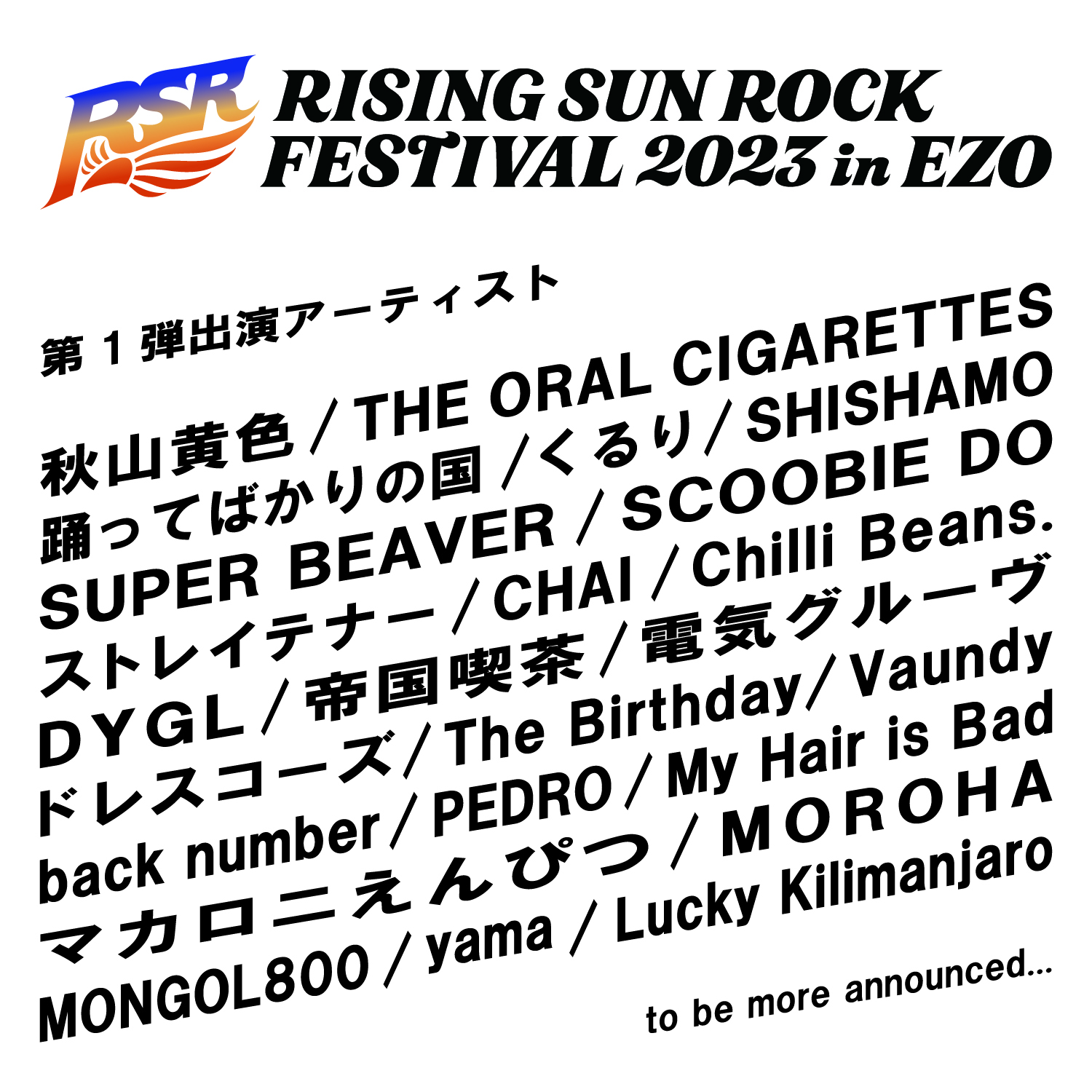 8月11日(金・祝)、12日(土)に北海道で開催される『RISING SUN ROCK FESTIVAL 2023 in EZO』の出演アーティスト第1弾が発表された。