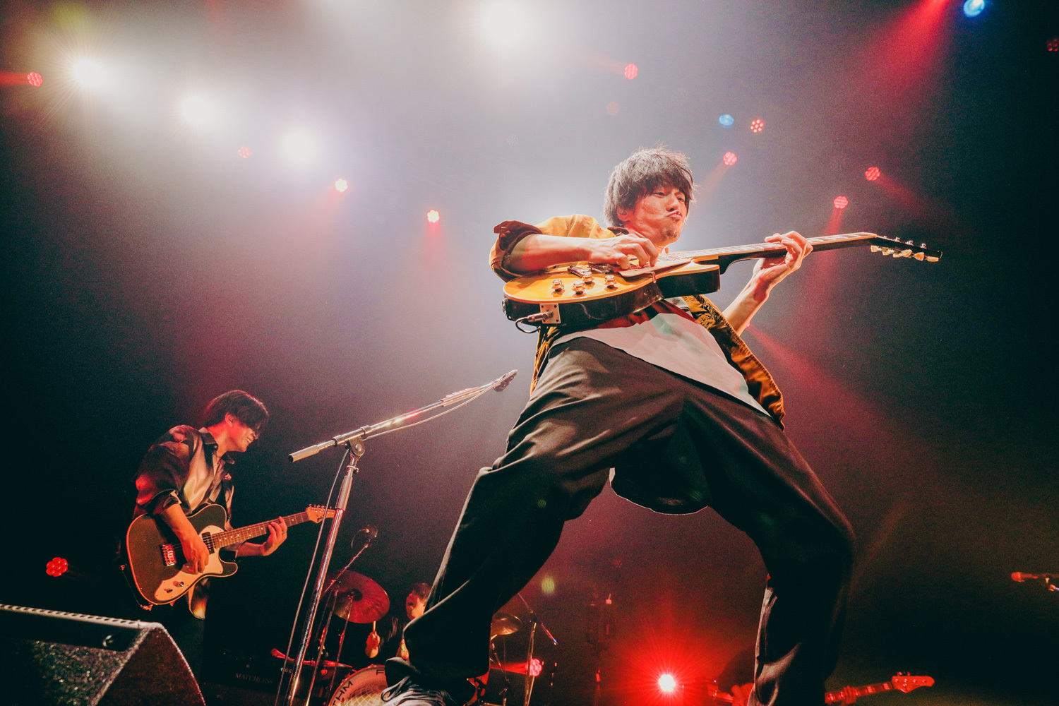 最初の1曲「夜の蝶」で一気に場内を盛り上げた後、レイヴのエッセンスも弾ける夏チューン「Summer Venus」を披露。観客の手拍子も炸裂した場内をさらに沸かせるべく、ギター&ボーカルの寺中友将が、手に持っていた缶ビールを景気良く飲んで見せる。