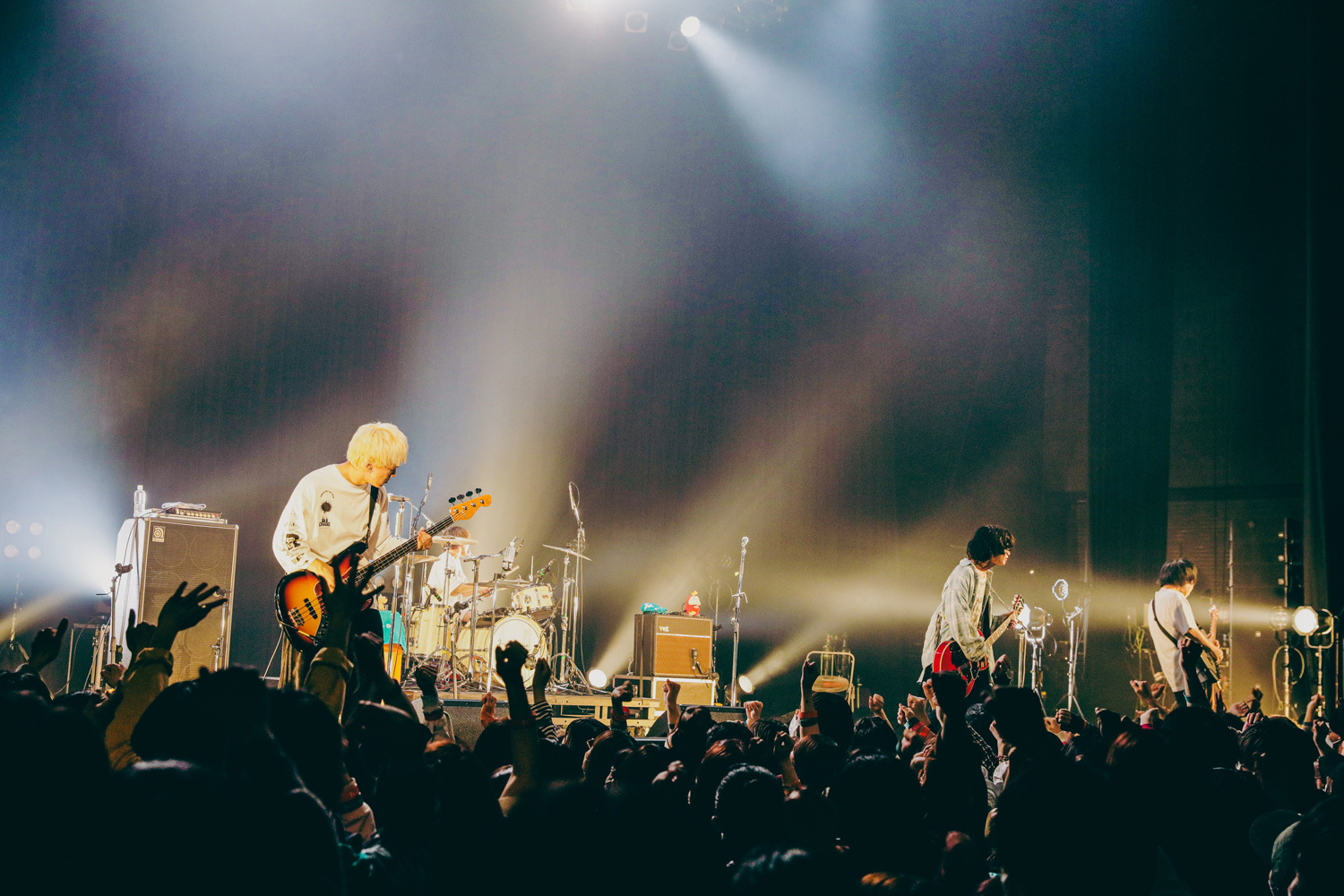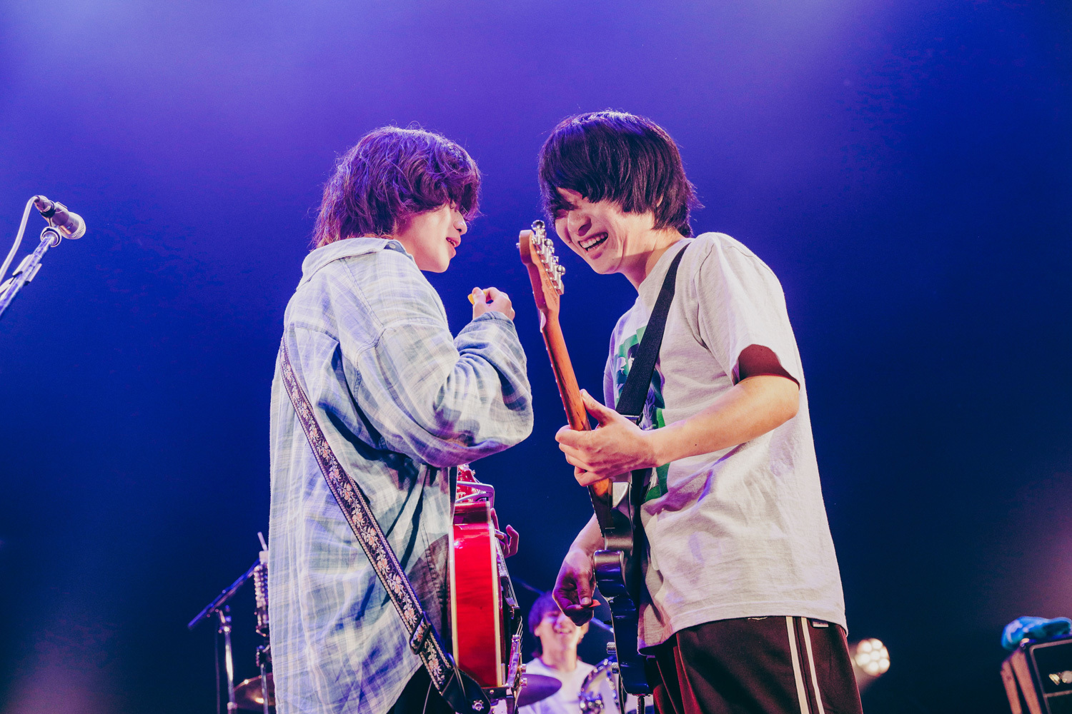 最後に披露された「ベイベイベイビー!」では、ギターのなおやとベースのしょうとが互いに向き合って熱い演奏を繰り広げる中、ボーカルのりょたちが即興で歌詞を変更。<あなたの為に生きてみたい>という最後のフレーズを、<ここに集まってくれた一人一人の為に…生きて行こう>と熱唱。この日、シンガロングとジャンプで大いに盛り上がった観客への感謝と真摯な想いを歌に込めて届けた。