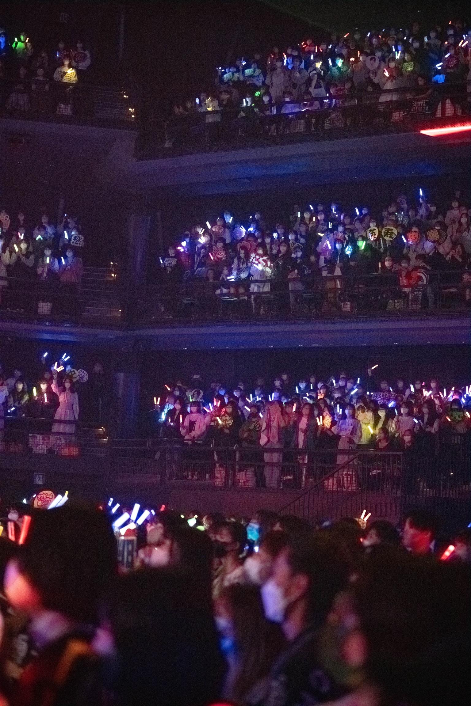 メインアクトの3組目はPSYCHIC FEVER。昨年7月のデビュー後、9月から約半年間、タイで“武者修行”を行ってきた彼らは、その半年間の鍛錬の成果を存分に発揮するようなエネルギーに満ちたライブパフォーマンスで聴衆を圧倒した。人差し指を掲げながら小刻みなステップを踏むサビのダンスが印象的な「Choose One」でライブをスタートさせると、「Spark It Up」では重低音響くアッパーなサウンドにオーディエンスも縦ノリでリズムに乗る。流れるように始まったショーケースでは、渡邉廉が得意のヒューマンビートボックスで多彩な音色を繰り出して観客の驚きを誘った。ライブ中盤には、5月17日にリリースされる1st EPからの新曲「BAKU BAKU」も披露され、メンバーはメロディアスなボーカルリレーとスキルフルながらキャッチーで楽しい振付のダンスでファンを魅了する。個々の卓越したスキルをしっかりと提示するパフォーマンスと、会場全体をパワフルに盛り上げてゆくライブ構成で客席をダンスホールに変えた彼らがラストに届けたのは「To The Top feat. DVI」。小波津志の「会場一体となりたいと思いますが、盛り上がっていけますか!」という呼びかけとともに、最後まで熱気あふれる歌とダンスを見せた7人は、全員で空を仰ぐポーズで曲を終えて最終アクトへとバトンをつないだ。