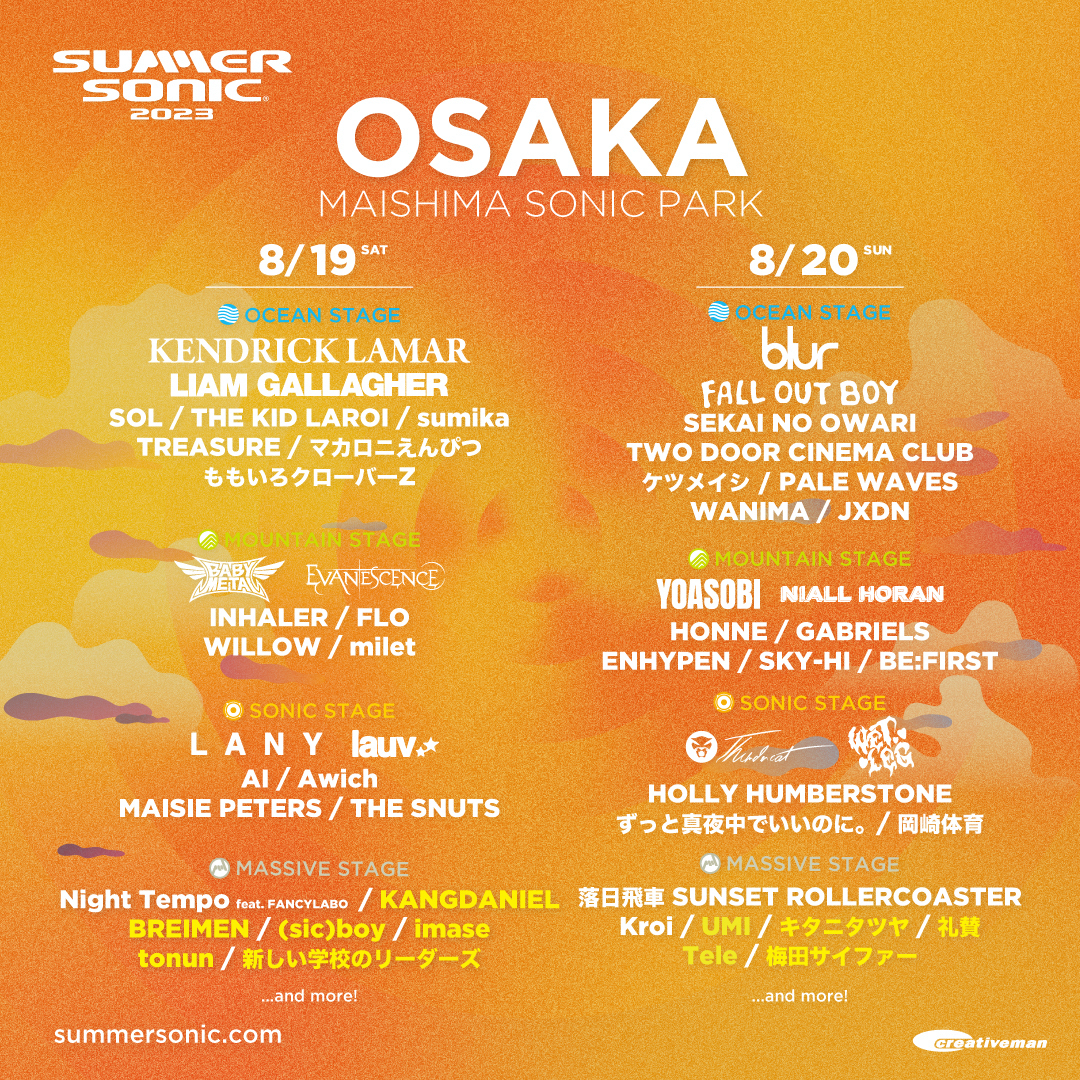 2023年8月19日(土)・20日(日)にZOZOマリンスタジアム&幕張メッセ、8月19日(土)・20日(日)に舞洲SONIC PARK(舞洲スポーツアイランド)にて開催される『SUMMER SONIC 2023』の第5弾追加アーティストとステージ別ラインナップが発表された。
