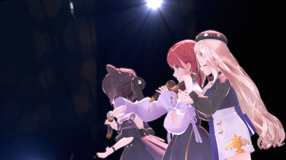「歌がやりたくてにじさんじに入った」という朝日南アカネは、大きなステージで歌うことが夢だったと語り、ようやく夢が叶ったこと、それを支えてくれたファンや何よりメンバーの2人には感謝しきれないと本音を漏らすと「え、アタシ?」と言わんばかりにお互いに指を差し合う先輩2人に茶化されたり、最後までこの3人の距離感には和まされる。
