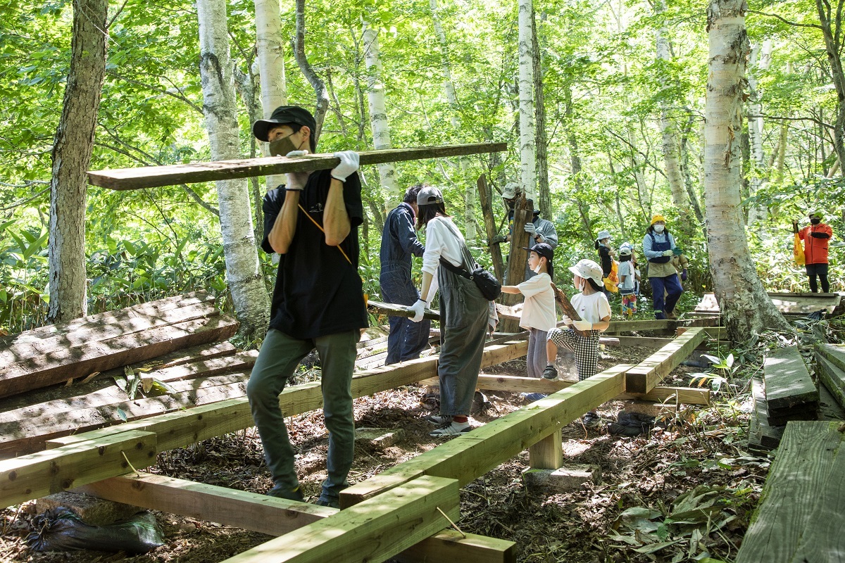 そんな「苗場ボードウォーク」は、雪や雨風の影響を毎年受けている。そのため、『フジロック』の本番に向けて「ボードウォーク」の整備を行いながら自然を楽しみ、周辺の森林の整備と保全につなげるキャンプイベント『ボードウォーク・ボランティアキャンプ』が今年も開催されるのだ。
