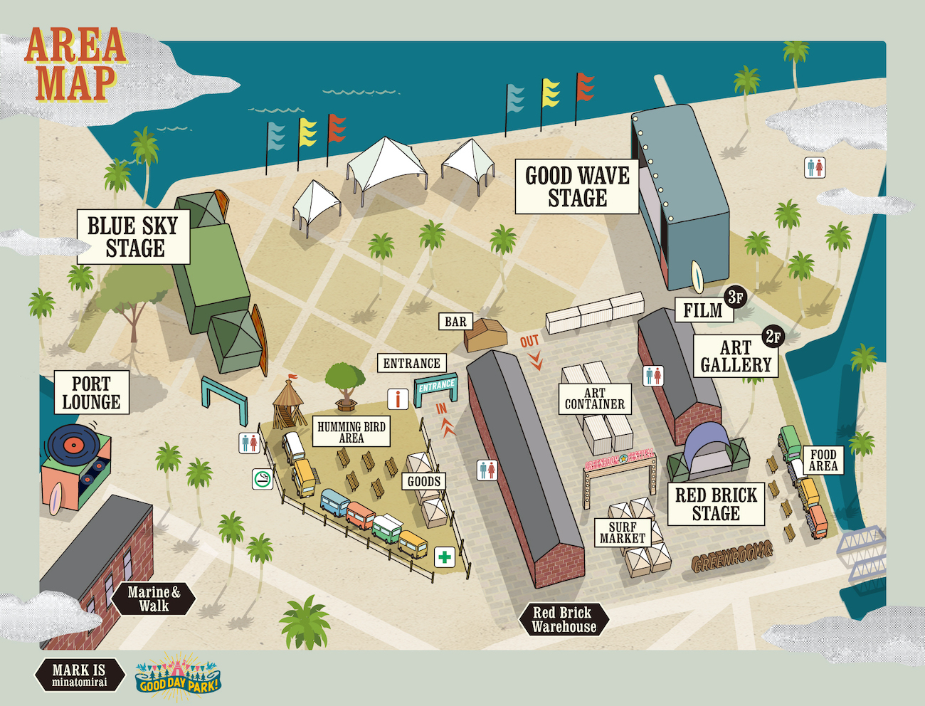「Good Wave」「Blue Sky」「Red Brick 」「PORT LOUNGE」の4ステージで、3年ぶりとなる9組の海外アーティストが登場。総勢38組のアーティストが2日間、熱いパフォーマンスを繰り広げる。