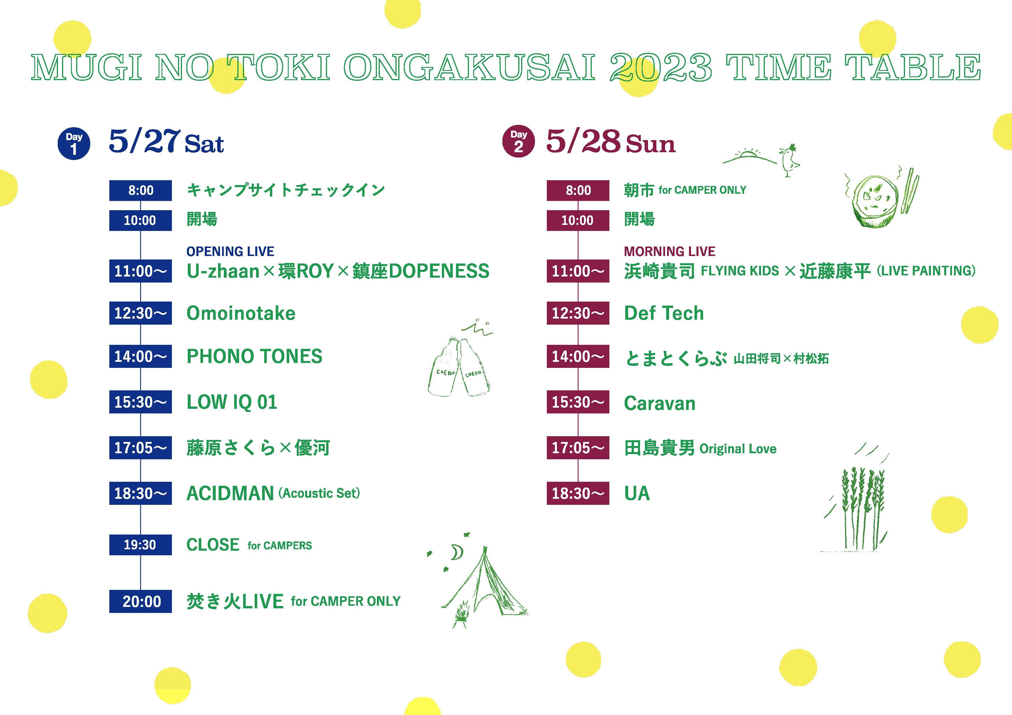 5月27日(土)28日(日)に埼玉県東松山市・COEDOクラフトビール醸造所敷地内で開催するキャンプ型音楽フェス『麦ノ秋音楽祭2023』のタイムテーブルが発表された。