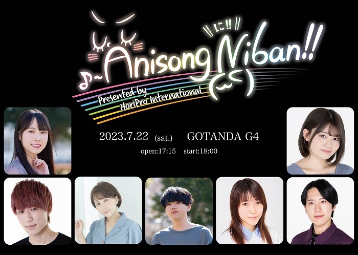 2023年7月22日(土)GOTANDA G4にて、『Anisong Niban!!presented by HoriPro International』の開催が決定した。